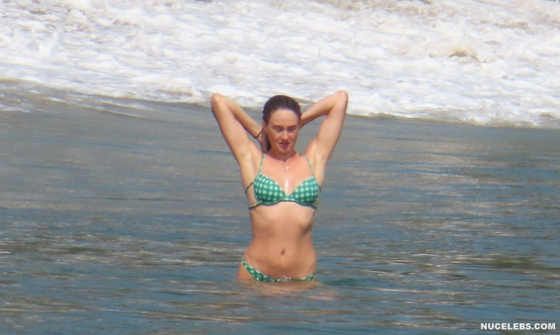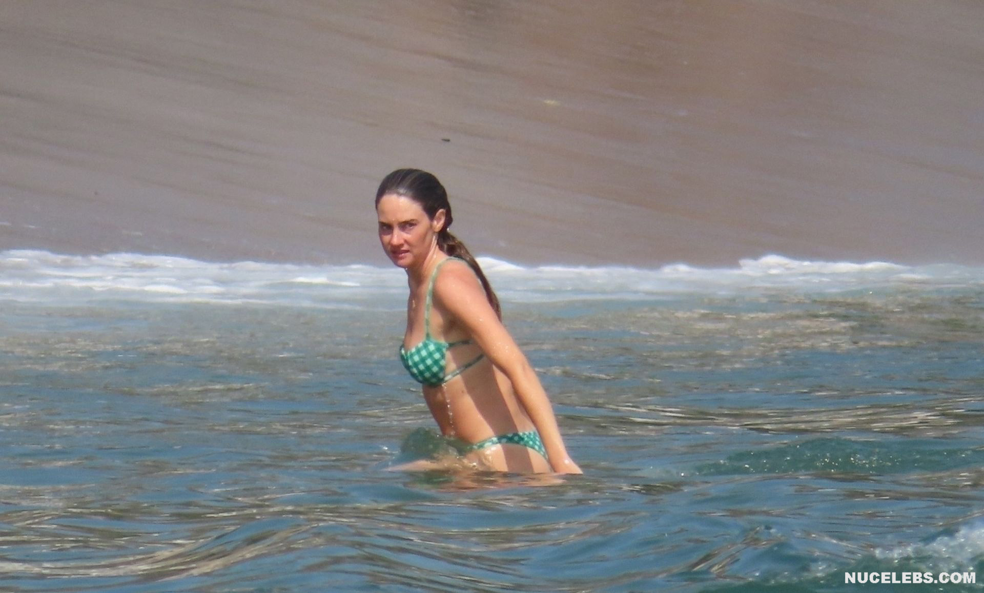 Shailene Woodley is eager to strip to sunbathe on the beach and show off her slender figure. So, the paparazzi caught this American actress in the company of her friends during a vacation. The girl was dressed in a green and white petite bikini that accentuated the curves. And while Shailene Woodley’s boobies or booty weren’t nude, they still looked super sexy in a tight bikini!