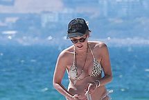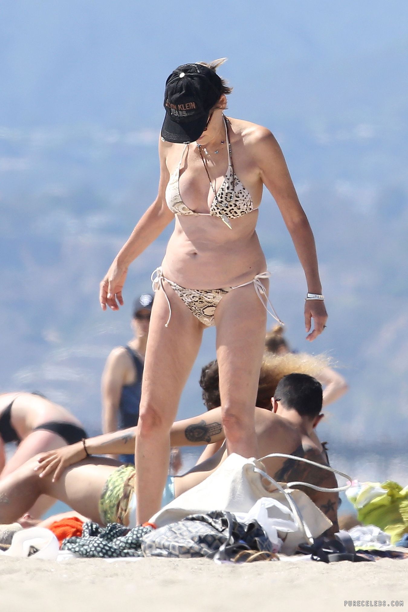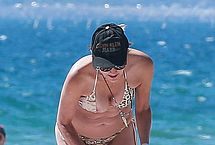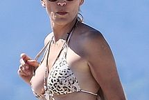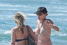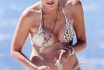 Young guys may not know blond actress Sharon Stone from her legendary role and crotch shot in Basic Instincts, but they can surely appreciate a busty MILF on the beach. Still going strong after all these years, and still in the lenses of paparazzi. Sharon let photographers get half a dozen pictures of her nip slip during her day at the beach. She may be mature, but those boobs are amazing.