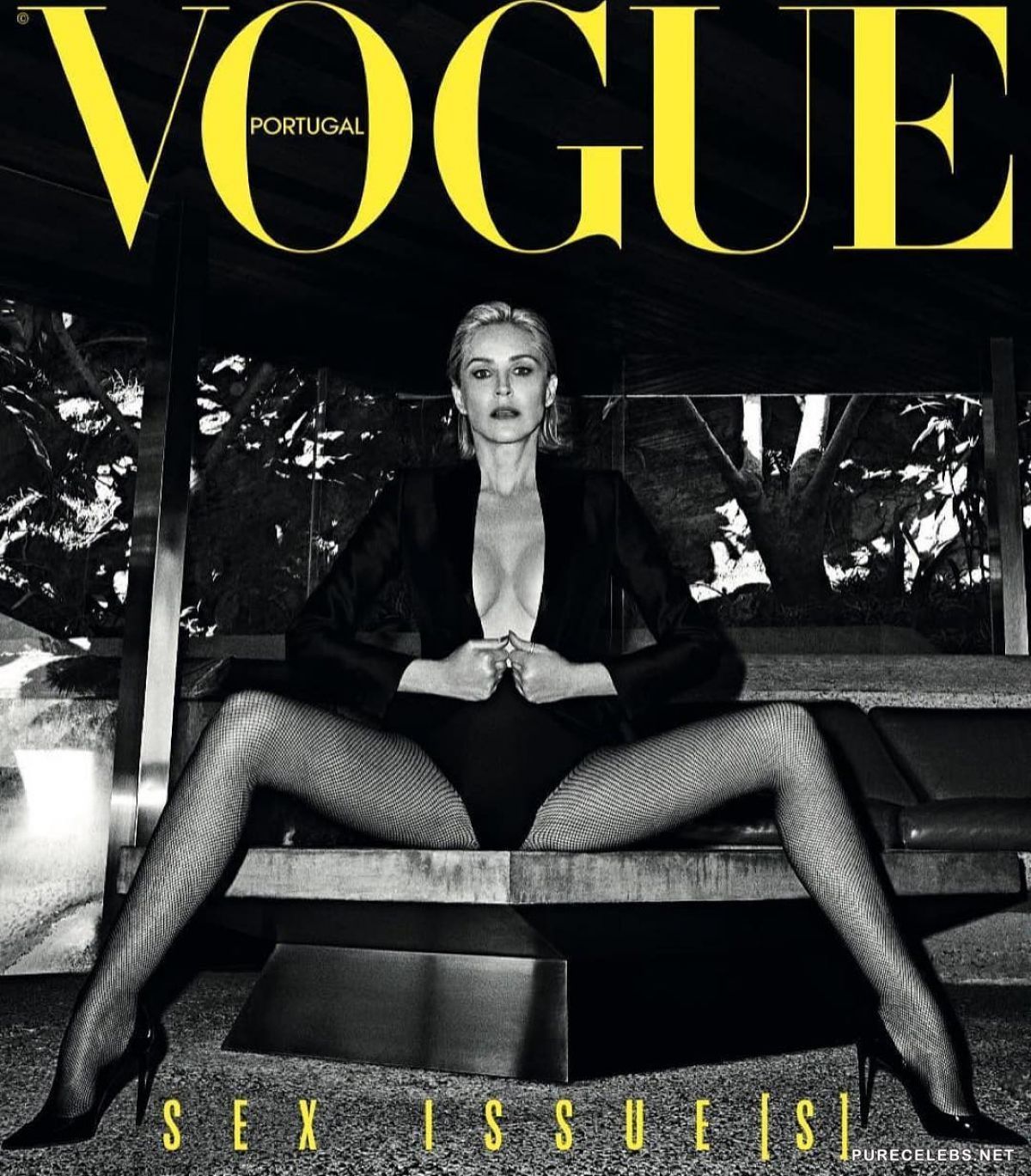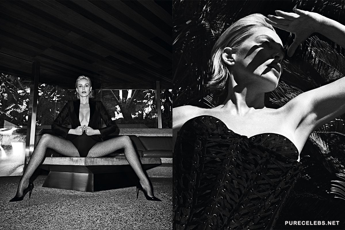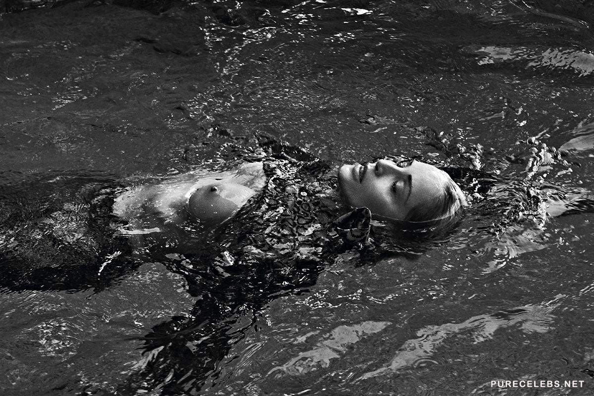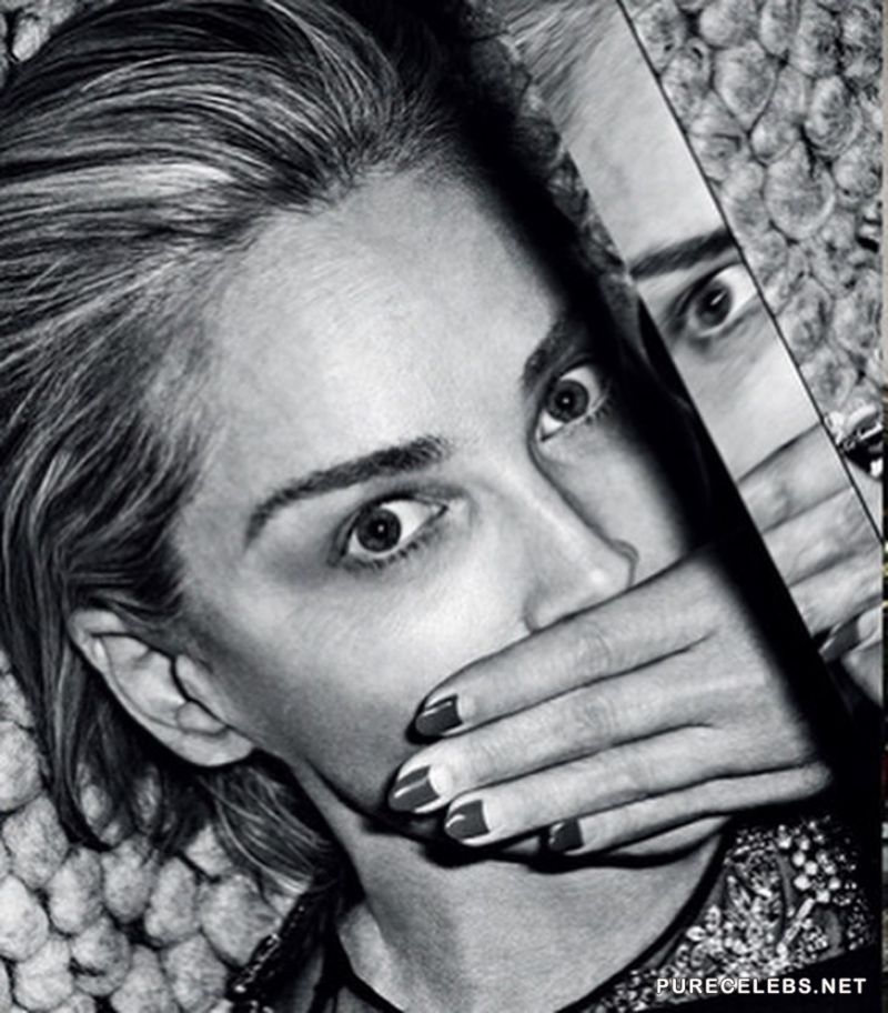Charming Sharon Stone continues to delight her fans with her provocative photos. Not so long ago, the famous actress took part in a candid black and white photo shoot for Vogue magazine. The star posed in revealing erotic outfits and looked just breathtaking. But the most sexy photo is the one on which she lies in the water and only her wonderful face and stunned naked boobs with hard nipples are visible.