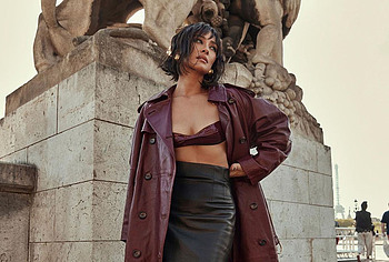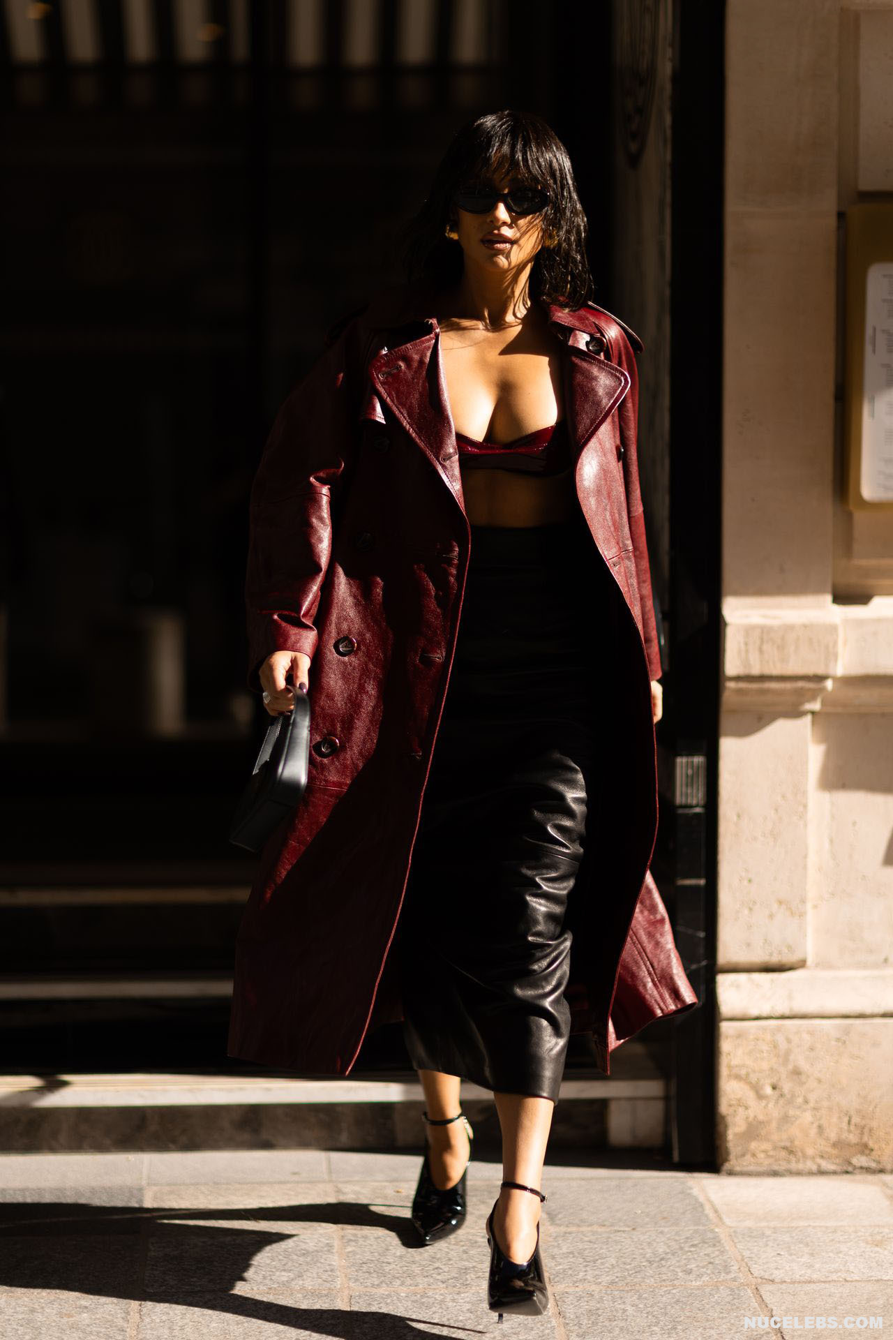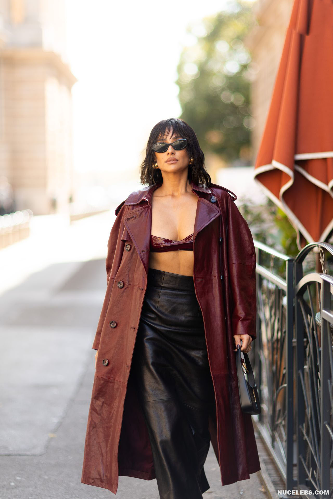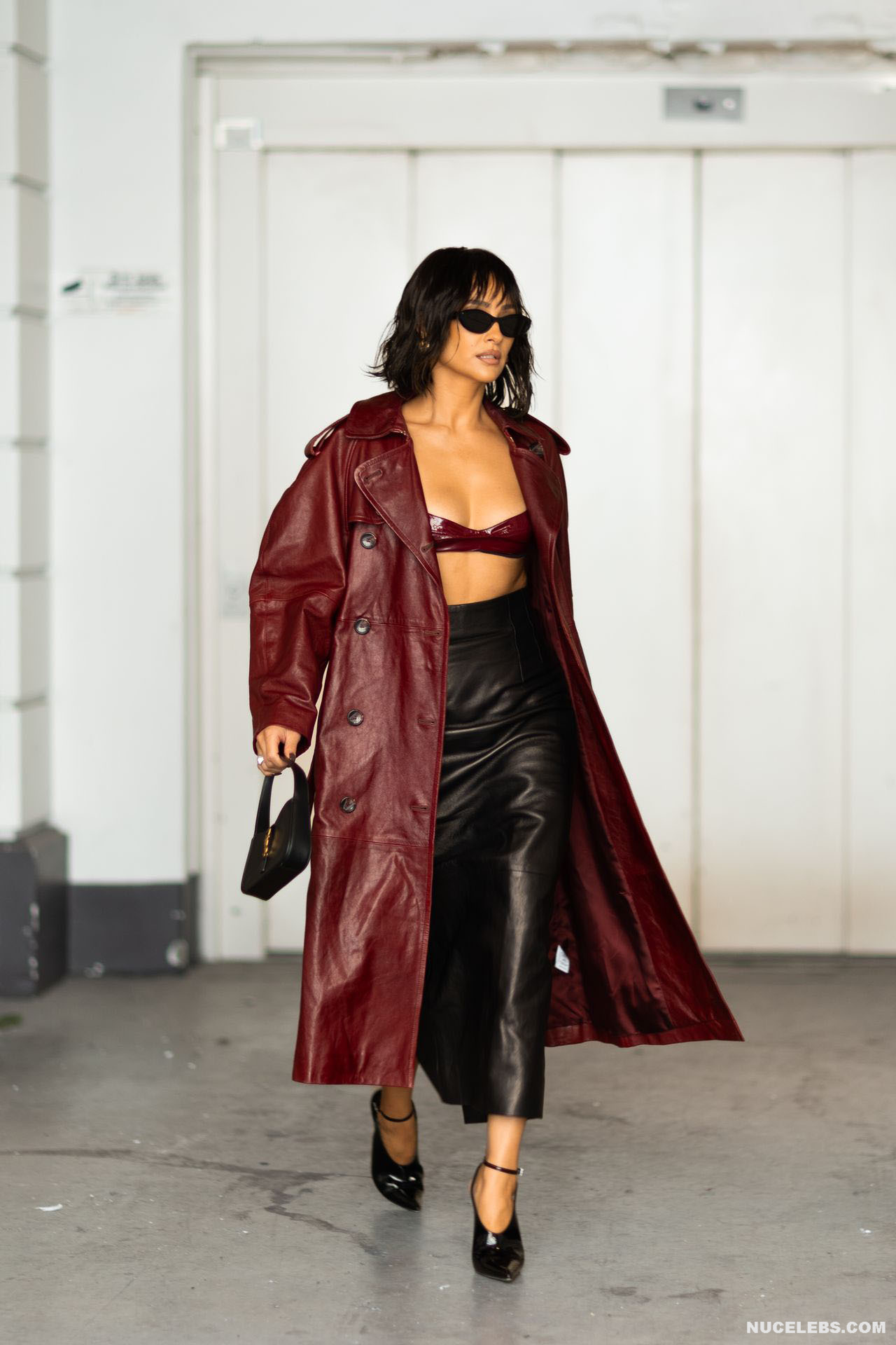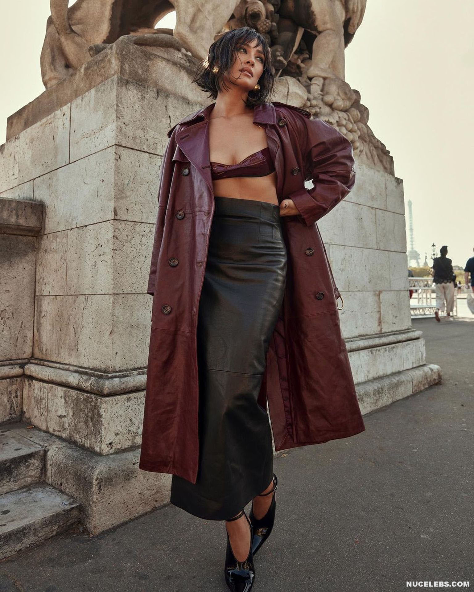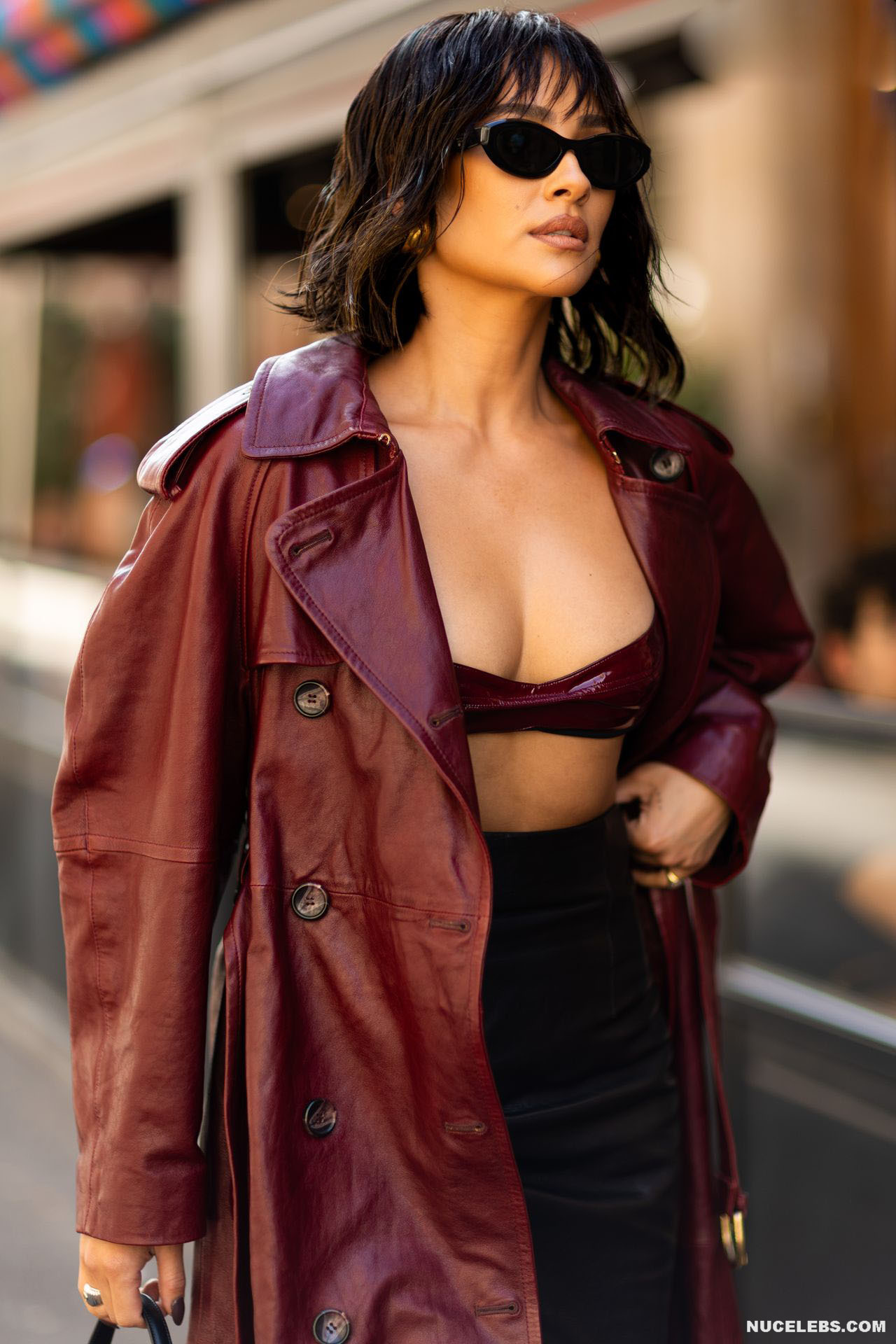 The way Shay Mitchell carries herself, moving with grace and poise, is like a mesmerizing symphony. This Canadian model looked stunning in a long burgundy leather coat and black leather skirt as she walked down the street. At the same time, all eyes were drawn to her amazing tits, which looked like they could jump out of her small leather bra at any moment. This star often poses in lingerie and revealing outfits. One day, Shay Mitchell was even photographed topless on the beach while she was taking a shower.