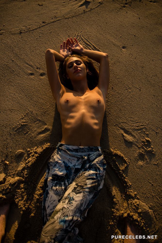 Fashion model Sheridan Rhode is a sexy little American brunette that likes to pose nude. Her latest photo shoot featured the curvy babe completely naked on the beach. The photos show off her amazing natural boobs and luscious ass. She likes to play with her tits while posing for the camera. She even decided to take a dip in the water during the shoot and get that tight pussy wet.