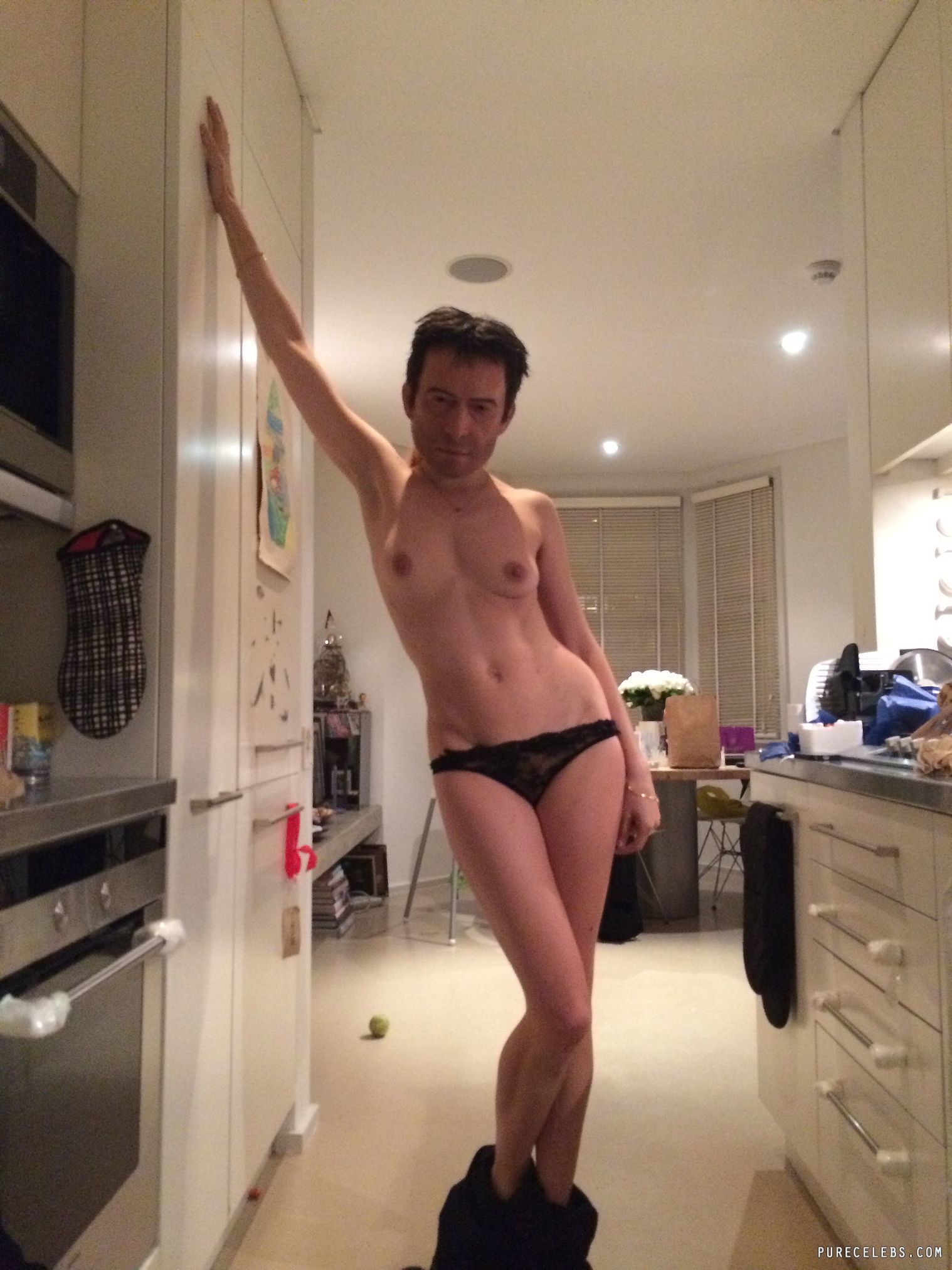 We got you shots of Sienna Miller topless and selfie in the lingerie style. Sitting on the ground, while spreading her dreamy legs, truly can increase pressure level in your head and, maybe, also somewhere else. Although she is wearing and trying to hide her face behind mask of men head, you can easily figure out its Siennas unique hot figurine.