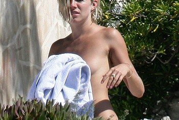 You’ll be captivated when you see Sienna Miller nude tiny titties! This hot beauty got into the camera lens during her beach vacation. This English model was sunbathing topless, so she was wearing only tiny panties. Observe Sienna Miller amazing boobies while she was swimming and basking in the sun! You’d love to lick her hard little nipples, wouldn’t you?