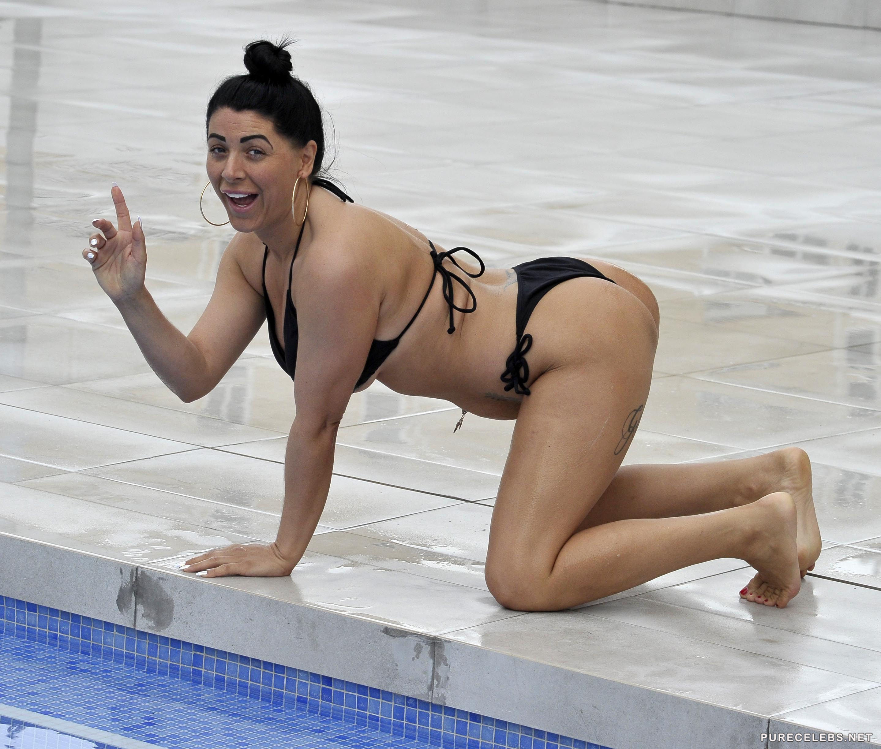 Former Big Brother and X Factor contestant, glamour model, TV personality and singer, Simone Reed is used to doing everything celebrities are doing to stay in the focus of attention. This gorgeous honey is making scandals here and there and is often considered to be one of the most seductive reality star in UK. Today we get to see her tit escaping the top of her bikini and her smile.