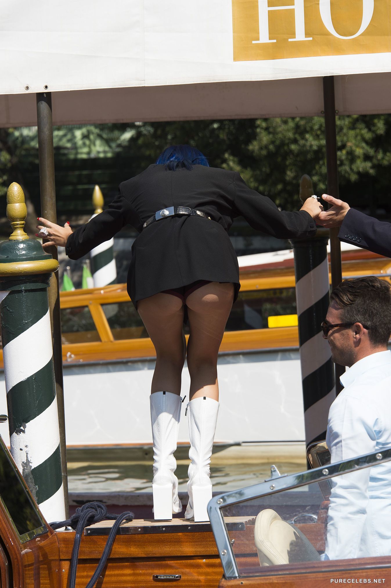 This sexy alternative Spanish model is not afraid to flaunt her natural curves. She was seen boarding a ship recently, wearing a playful outfit which left her gorgeous ass as the center of attention. Reporters didn’t hesitate to photograph her rear as she bent to climb aboard the vessel. Even though she is most recognizable for her navy blue hair, I think we can all agree her inviting butt is her best feature.