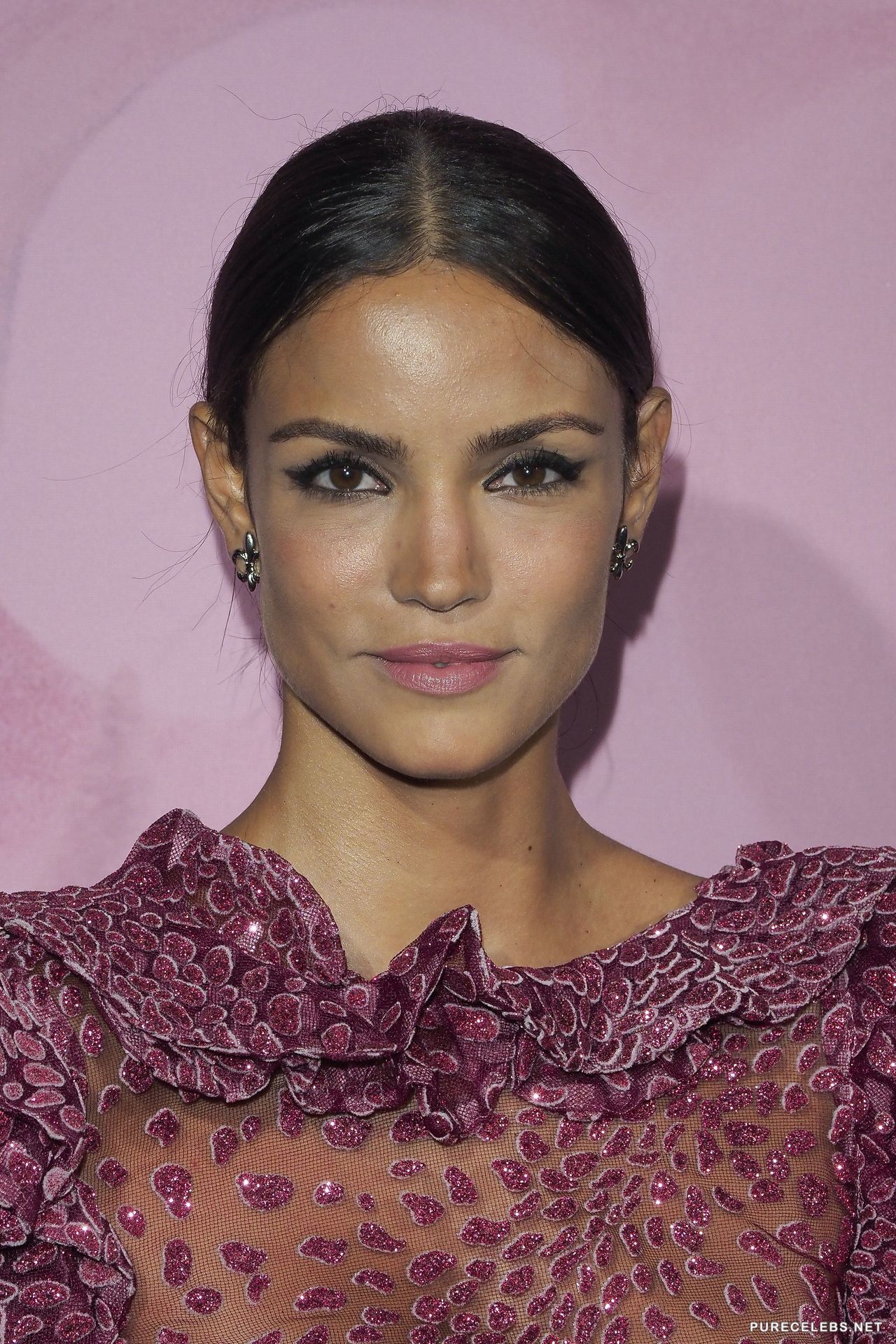 Brazilian model Sofia Resing will certainly conquer you with its bright appearance and perfect figure, which she gladly demonstrates. Recently, this hot brunette visited a social event wearing shiny shorts, which perfectly showed off her slender legs. In addition, she put on a translucent blouse, through which it was possible to see her awesome naked boobs, because the sexy model did not take care to put on a bra.