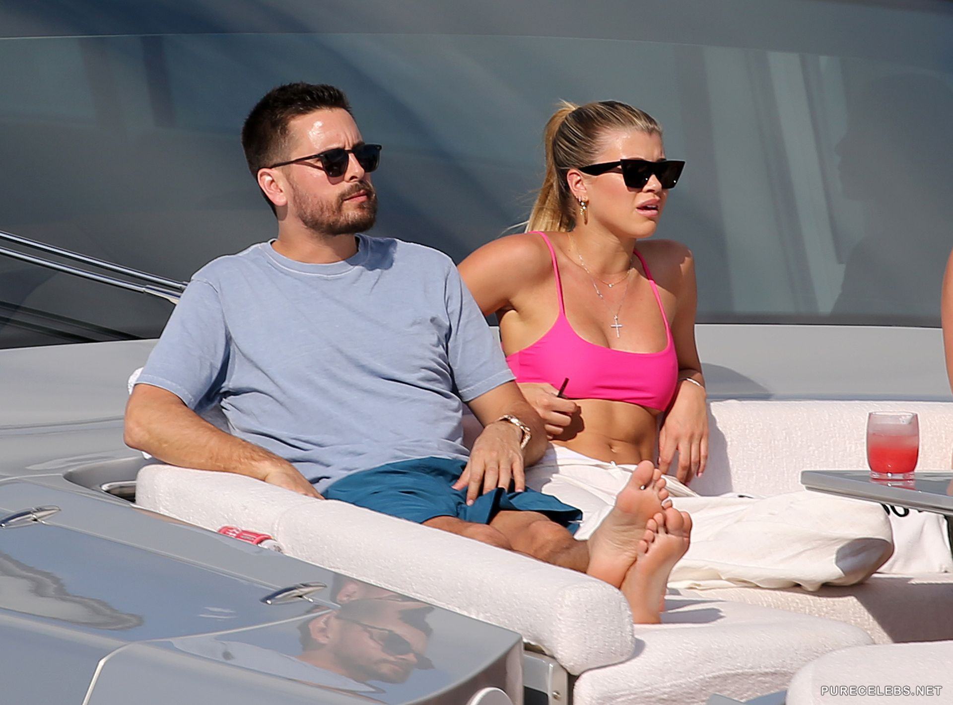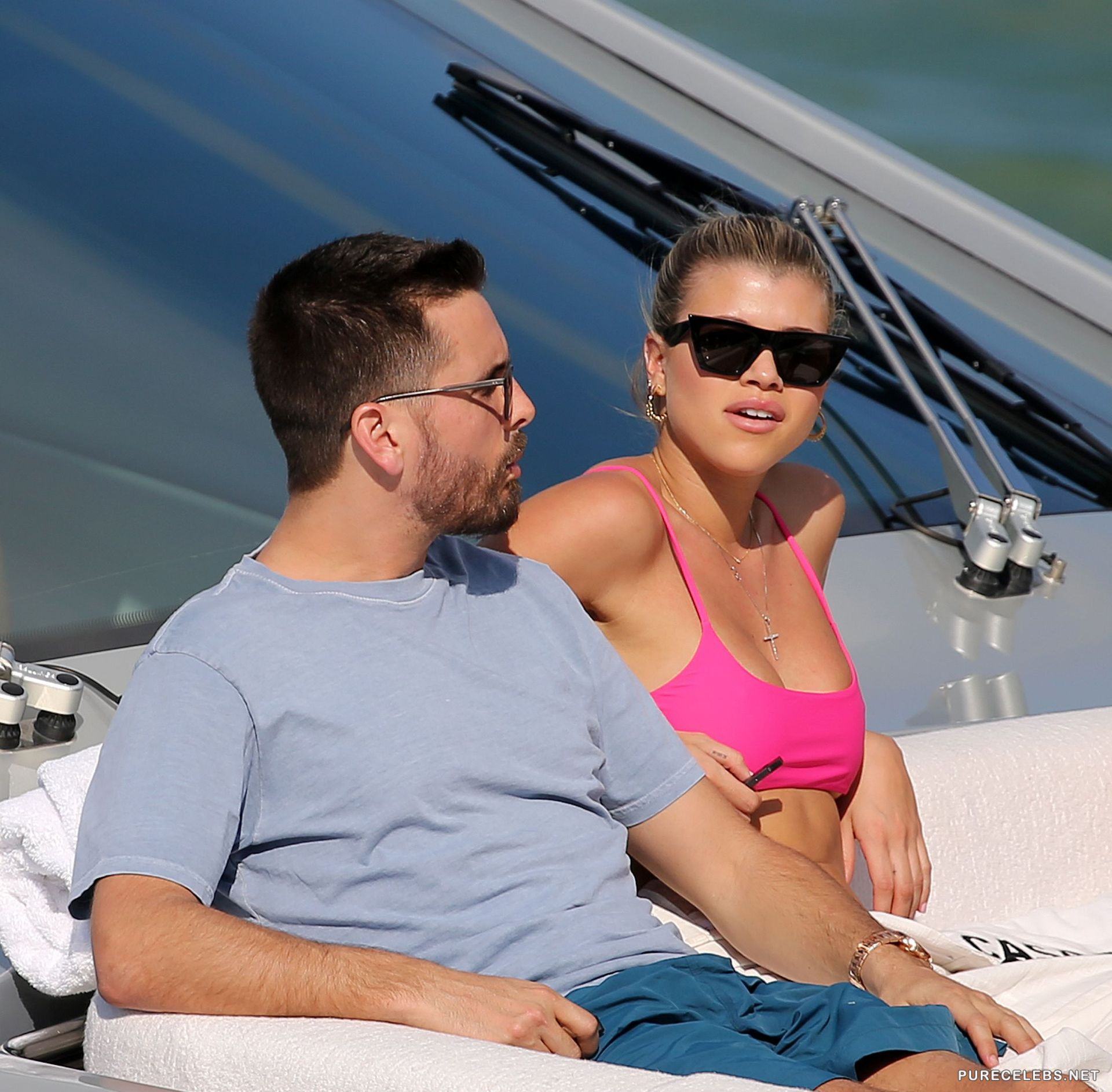 Sofia Richie is on a yacht at sea and she is catching some sun while she is wearing her bikini. She is with her boyfriend here and she is looking as cute as ever. There are no nude shots of her here, but we can see her pretty body almost fully while she is in a private area with her man, thinking she is away from prying eyes.