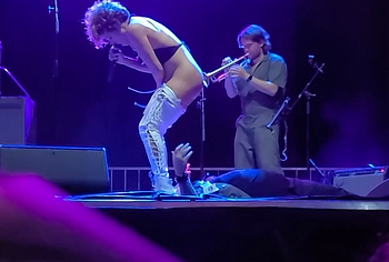 The Rockville festival at the Daytona International Speedway took place on Thursday. And after the incident that happened there in the evening about one of the bands started talking all over the world. We are talking about the rock group Brass Against, namely, what their frontwoman did. Sophia Urista took off her pants right on stage and blew a stream of piss right in the face of a fan!