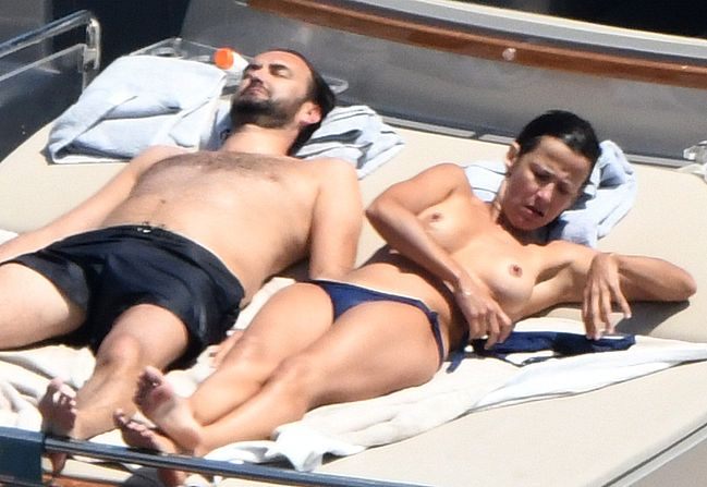 Ripe French actress Sophie Marceau didn’t think she would be interesting to paparazzi, but she was wrong. During a vacation with her husband, photographers caught up with her, and managed to take these photos of her on a yacht. You can see this MILF naked except for her black bikini thong, and get a good look at her gorgeous tits. She’s really aging beautifully, we have to say!