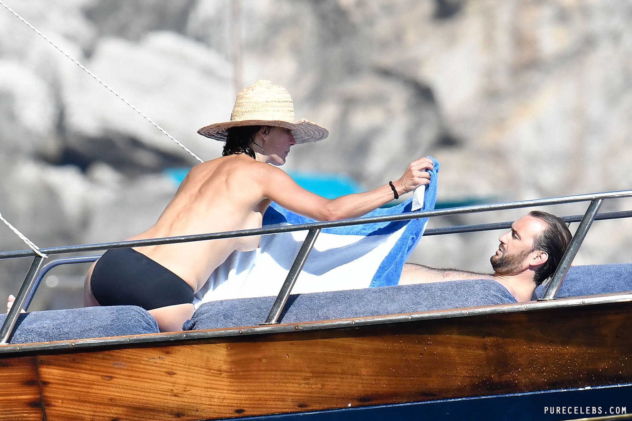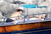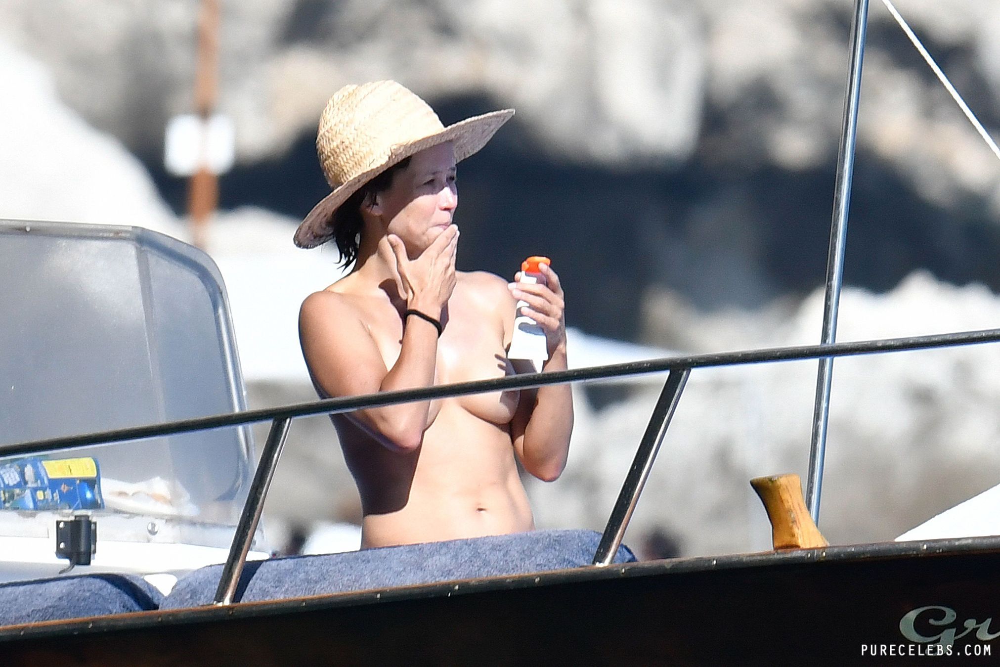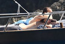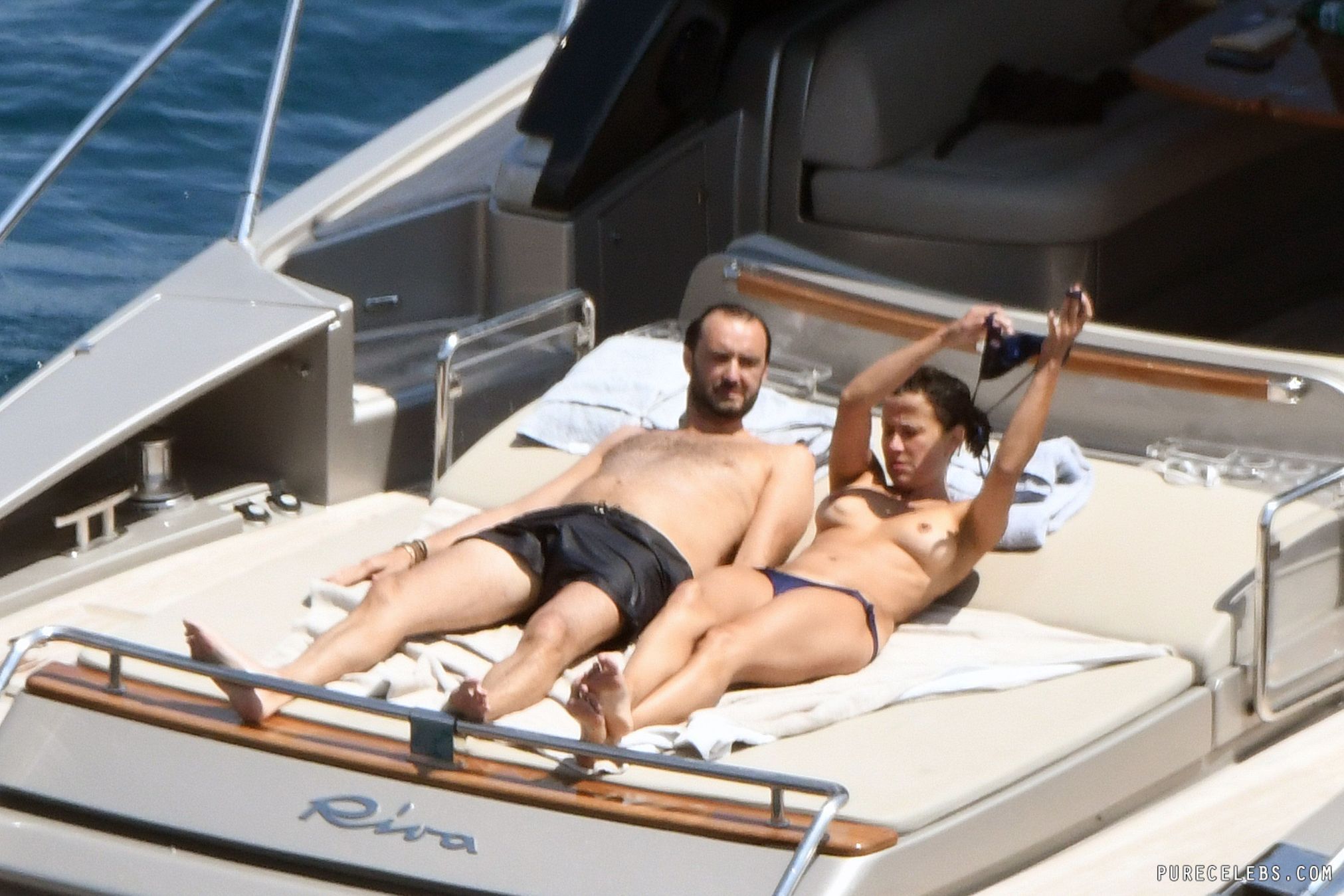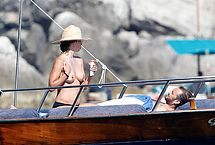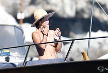 Ripe French actress Sophie Marceau didn’t think she would be interesting to paparazzi, but she was wrong. During a vacation with her husband, photographers caught up with her, and managed to take these photos of her on a yacht. You can see this MILF naked except for her black bikini thong, and get a good look at her gorgeous tits. She’s really aging beautifully, we have to say!