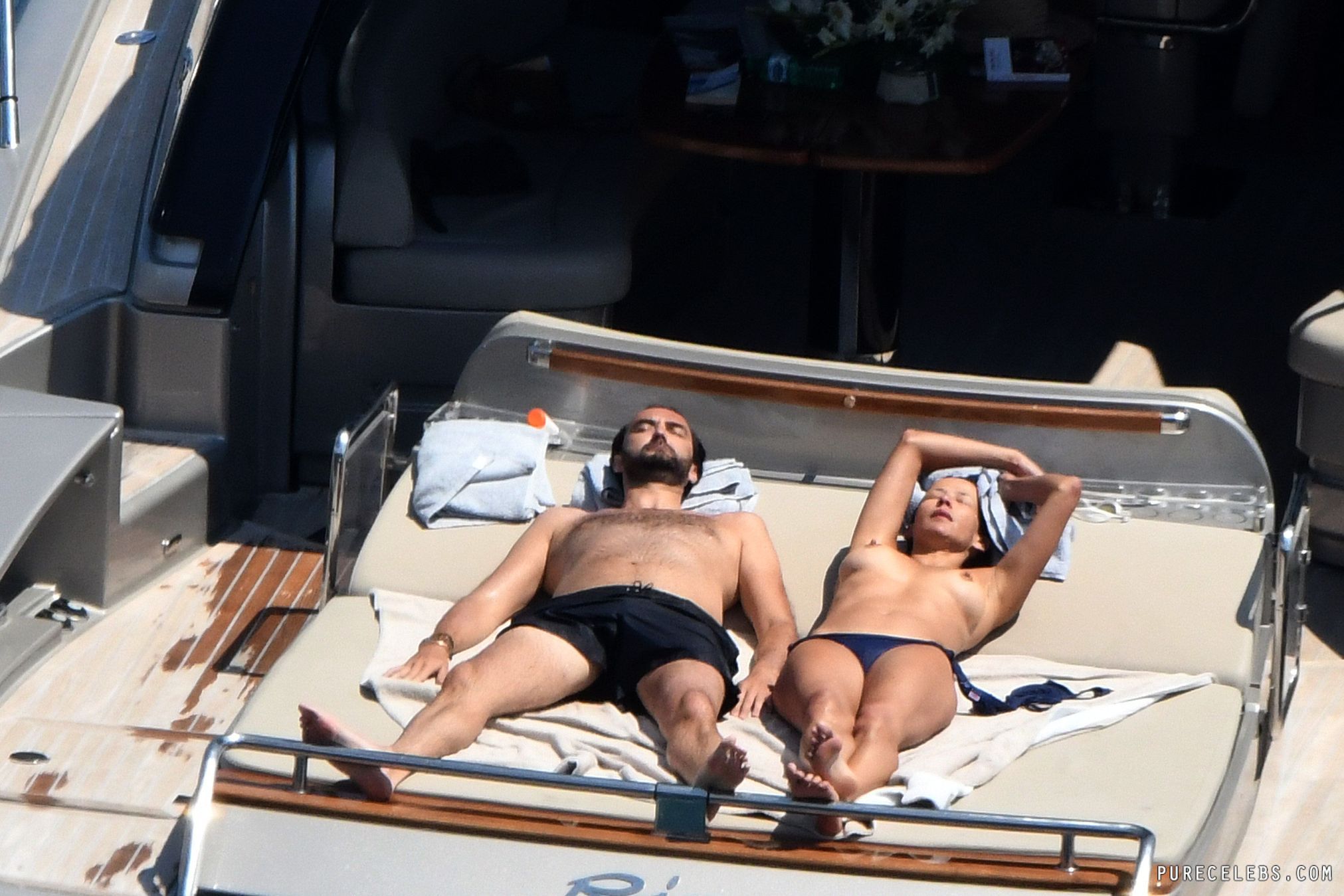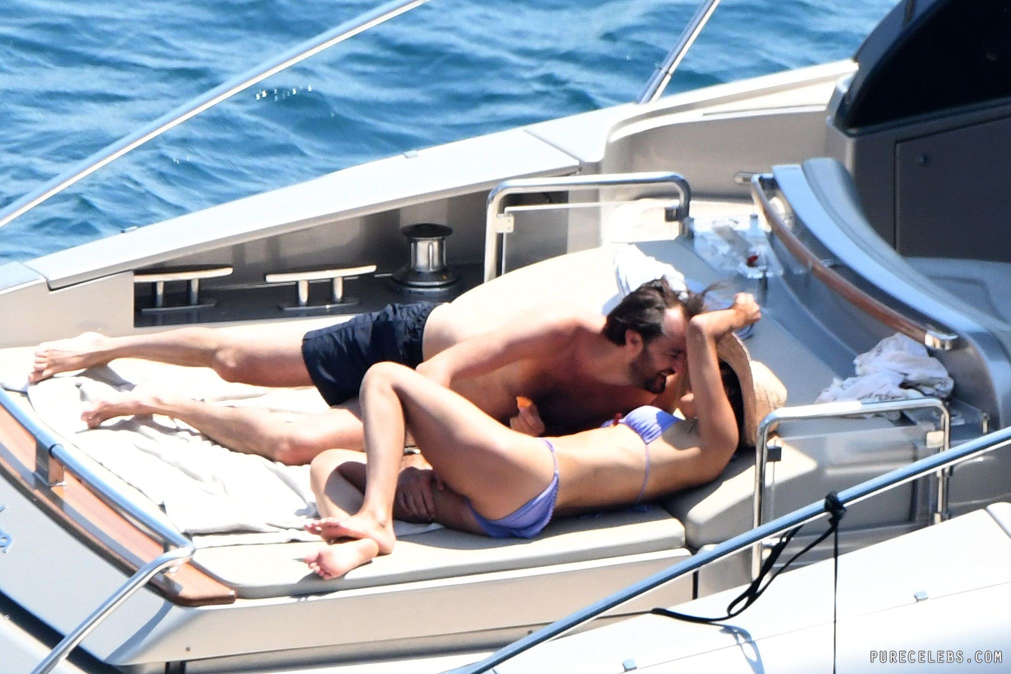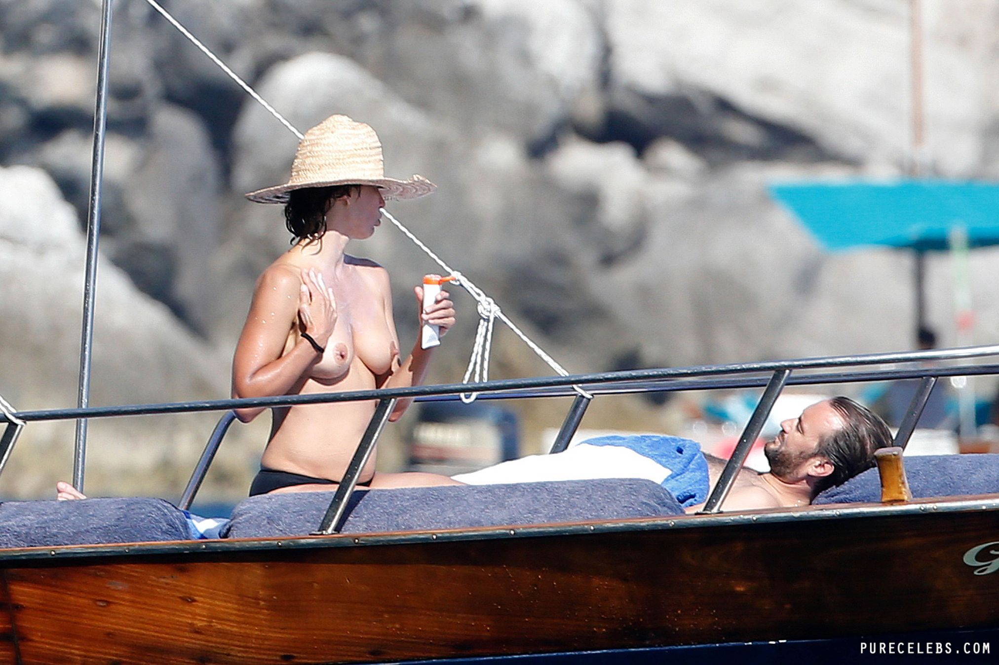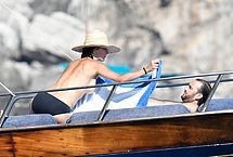 Ripe French actress Sophie Marceau didn’t think she would be interesting to paparazzi, but she was wrong. During a vacation with her husband, photographers caught up with her, and managed to take these photos of her on a yacht. You can see this MILF naked except for her black bikini thong, and get a good look at her gorgeous tits. She’s really aging beautifully, we have to say!