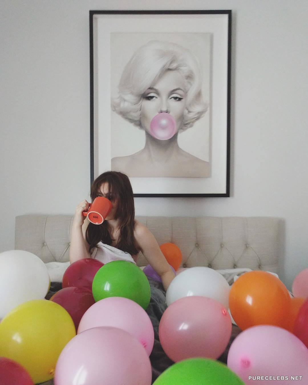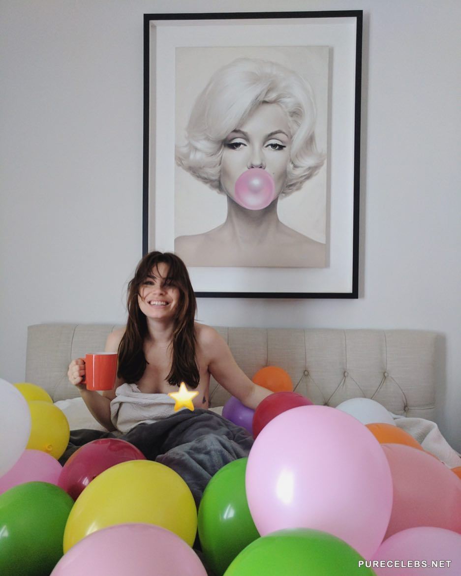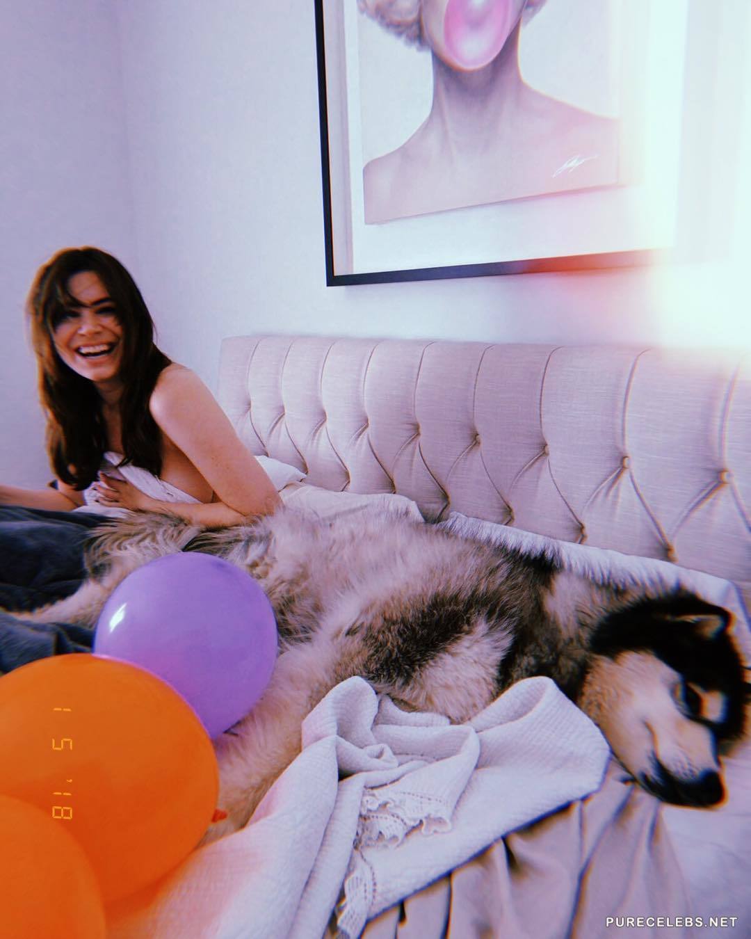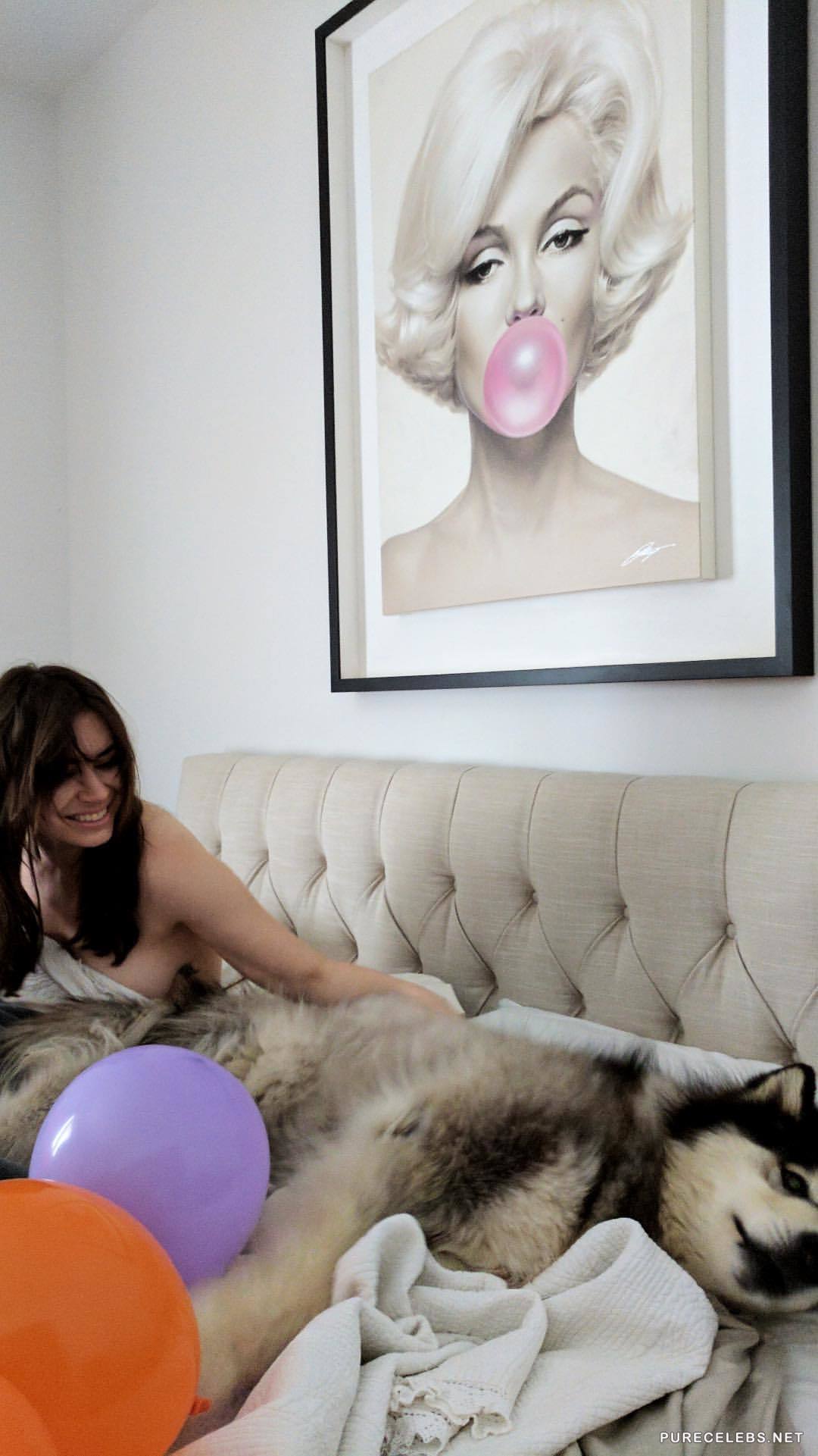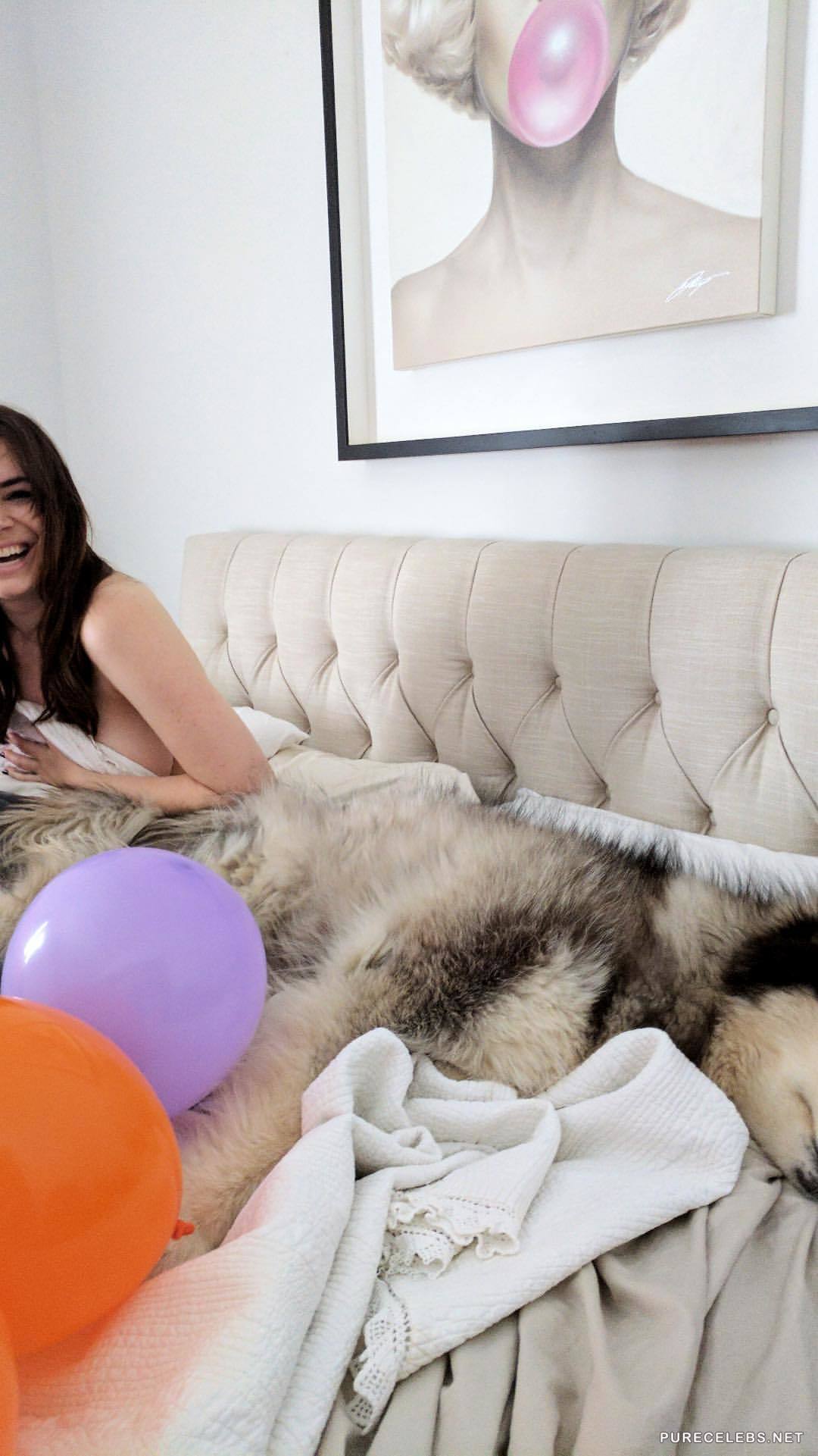 Sophie Simmons is a well-known actress famous for her work in Genne Simmons Family Jewels, several short movies and she is social huge social media star. She has been endowed with natural beauty and killer body. Here we have some pictures from her photo collection, where we see her lying in bed naked, half covered, while exposing her massive boobs, and her smiling because she got pounded real good night before that.