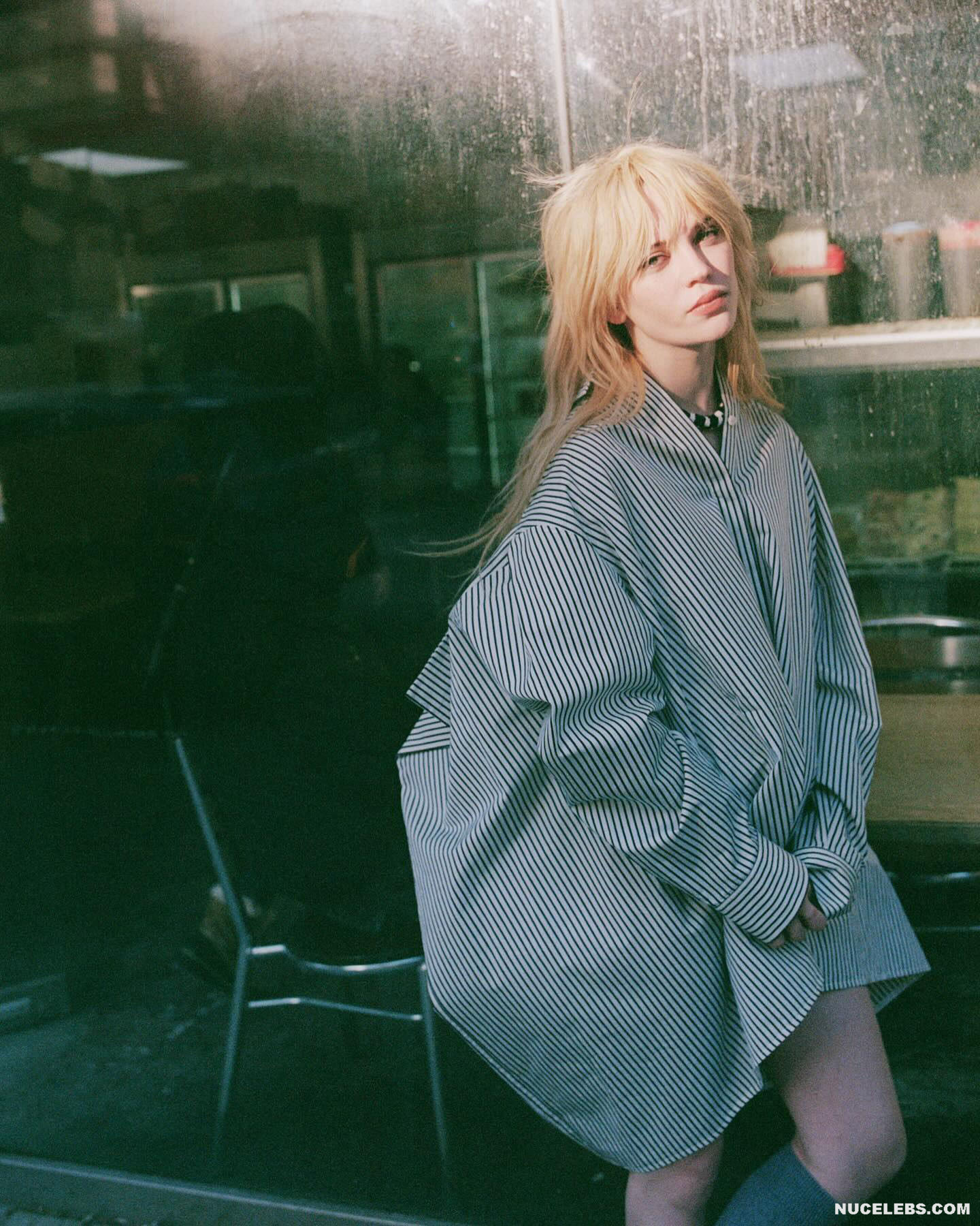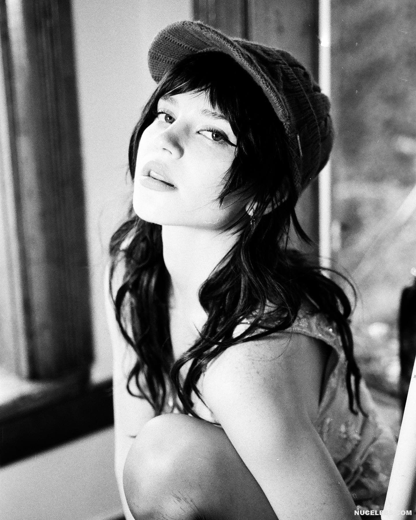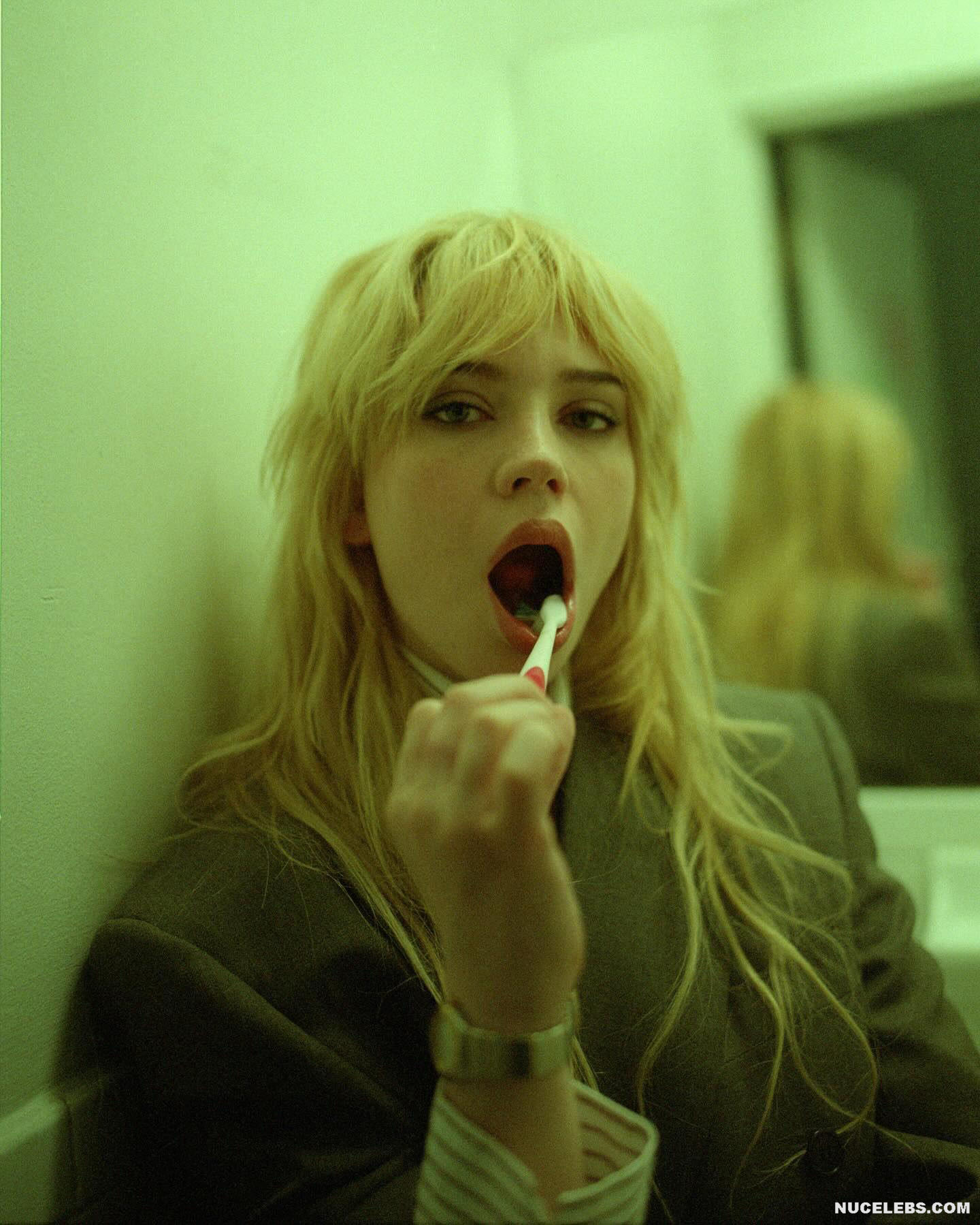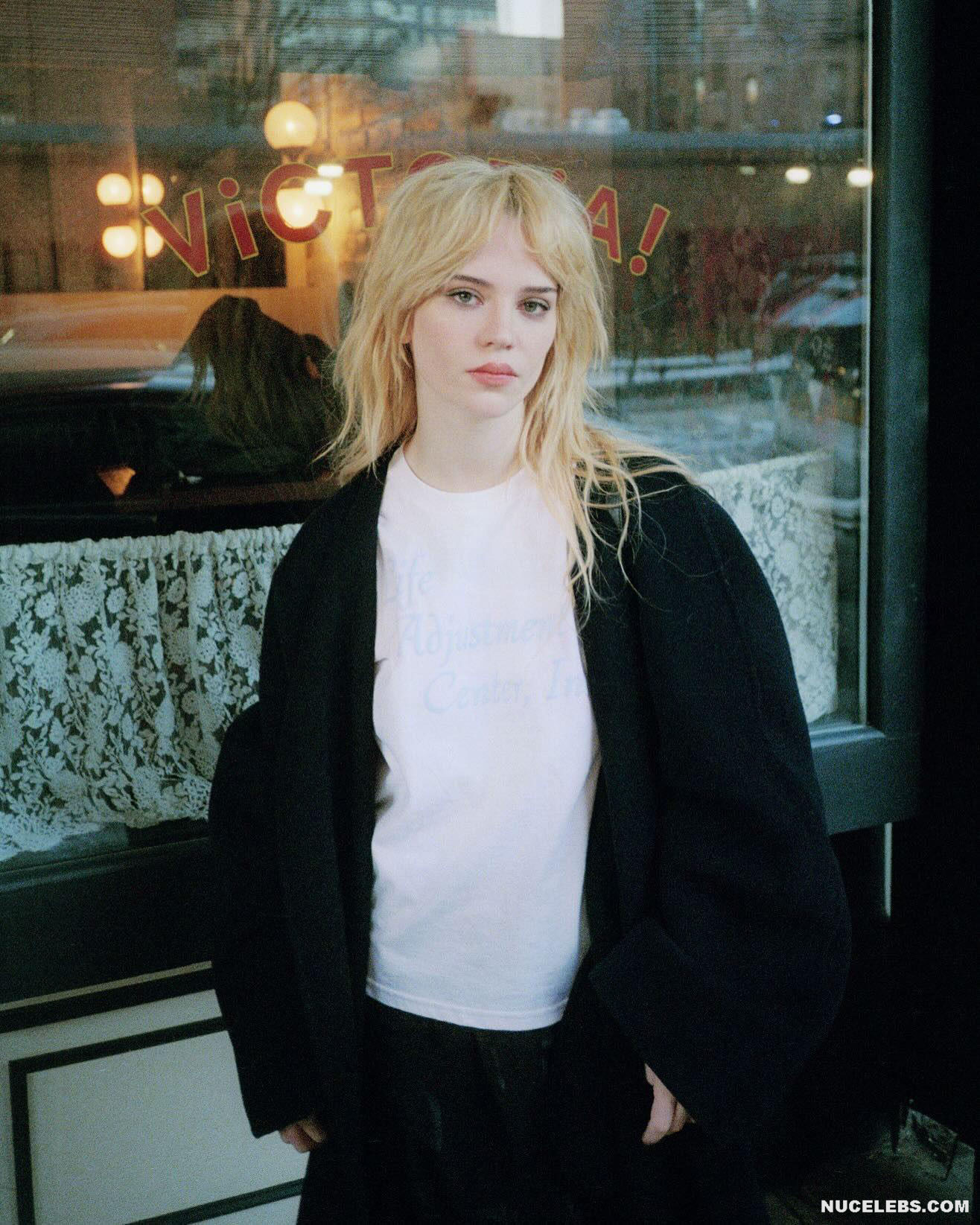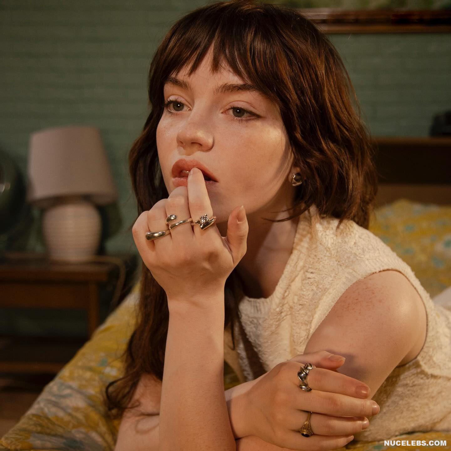 Sophie Thatcher knows how to turn heads! This young actress is glowing in every picture! Here she is posing in a white outfit during a photo shoot and her brown nipples are visible through the lace fabric. Also, this celebrity decided to treat us with her topless photos. Sophie Thatcher squeezed her nude tits with her hands, which made them look even juicier and bigger. She just broke the internet—watch here!