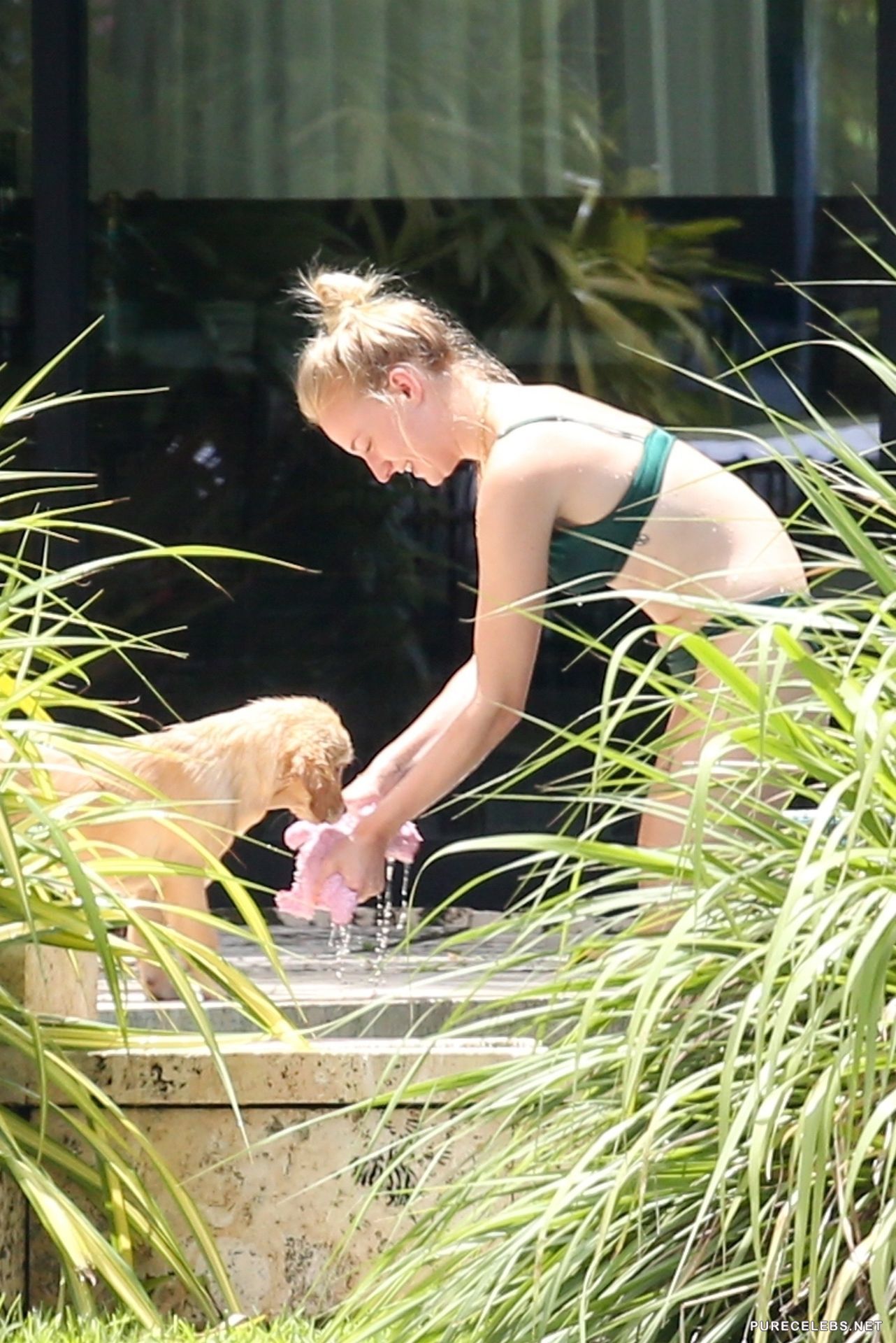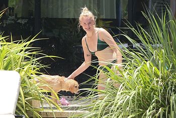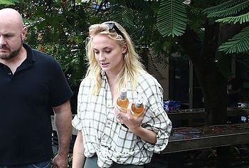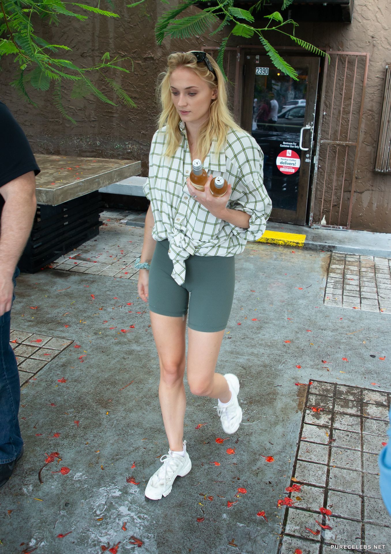 Hot beauty Sophie Turner remains under the scrutiny of the paparazzi. Recently, this actress was photographed on the street in a very seductive outfit. Sweet blonde wore a white plaid shirt, which was tied around the waist and tight green shorts. It is worth noting that her booty in shorts looked incredibly sexy, and it was hard not to notice her amazing cameltoe, which was clearly visible through the thin fabric.