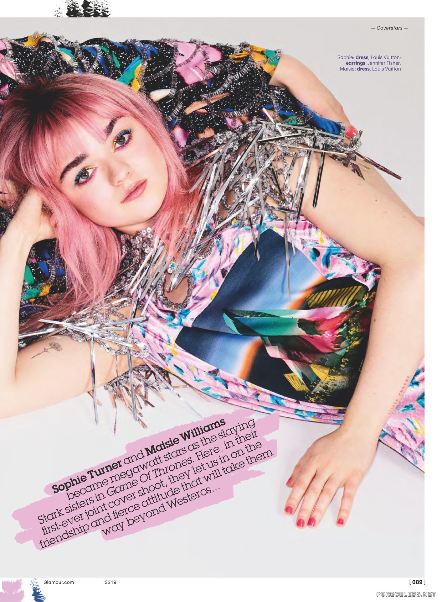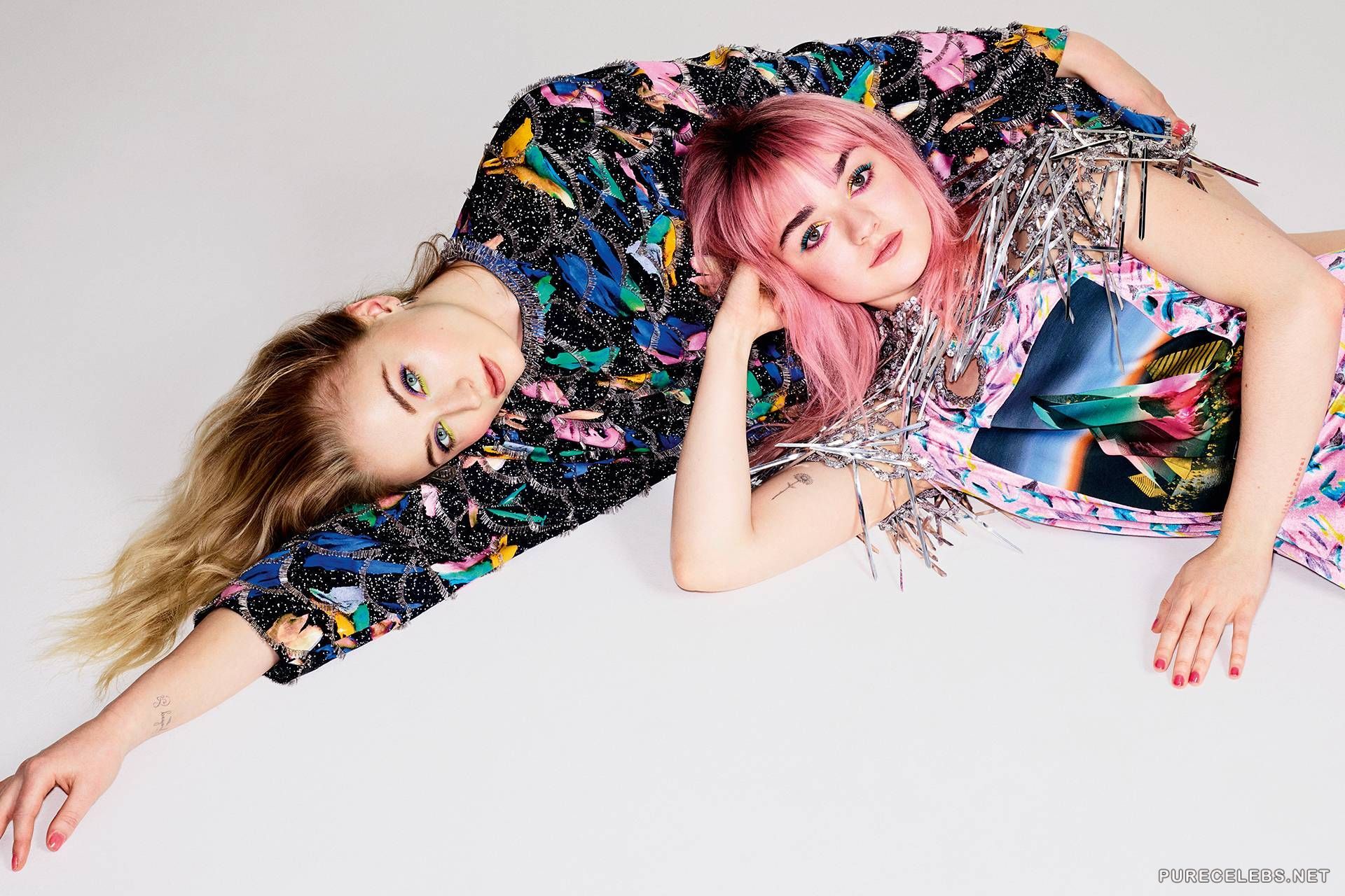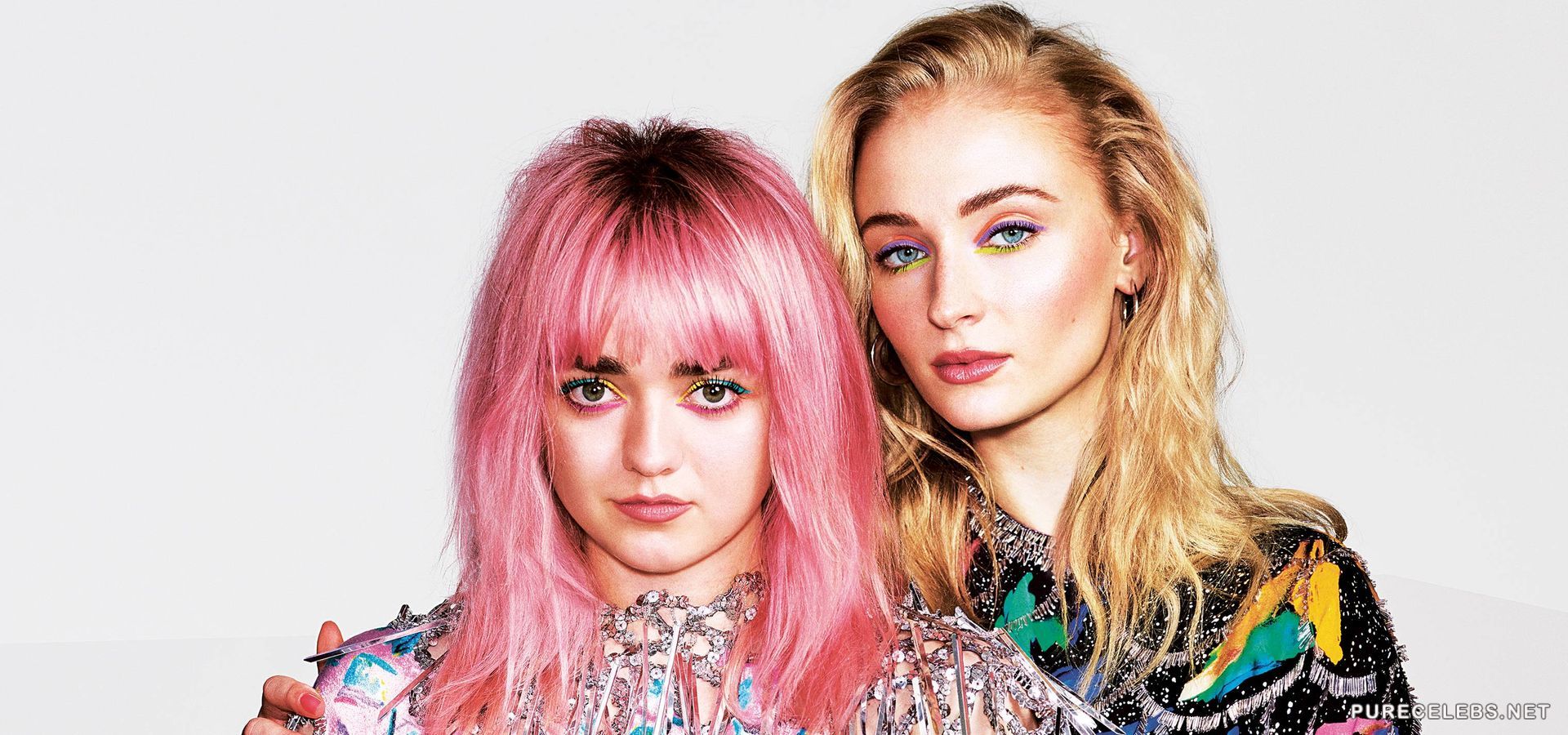 This April, Sophie Turner and Maisie Williams will returned to their roles as Sansa Stark and Arya Stark for season 8 “The Game of the Thrones”. But before that they took part in the photosession for Glamor Magazine. Sophie preferred to pose in clothes with a bright print and emphasized her lips with bright red lipstick, and her blond hair left disheveled, that allowed her to look very bold and sexy. During the photosession Maisie was with pink hair and bright colored make-up which emphasizes her big eyes and sexy lips. Girls so tenderly embraced each other in the frame that this again makes us think about their romantic relationship.