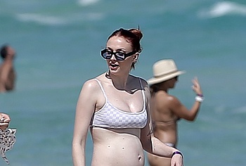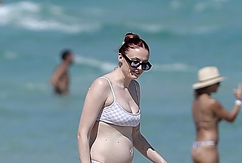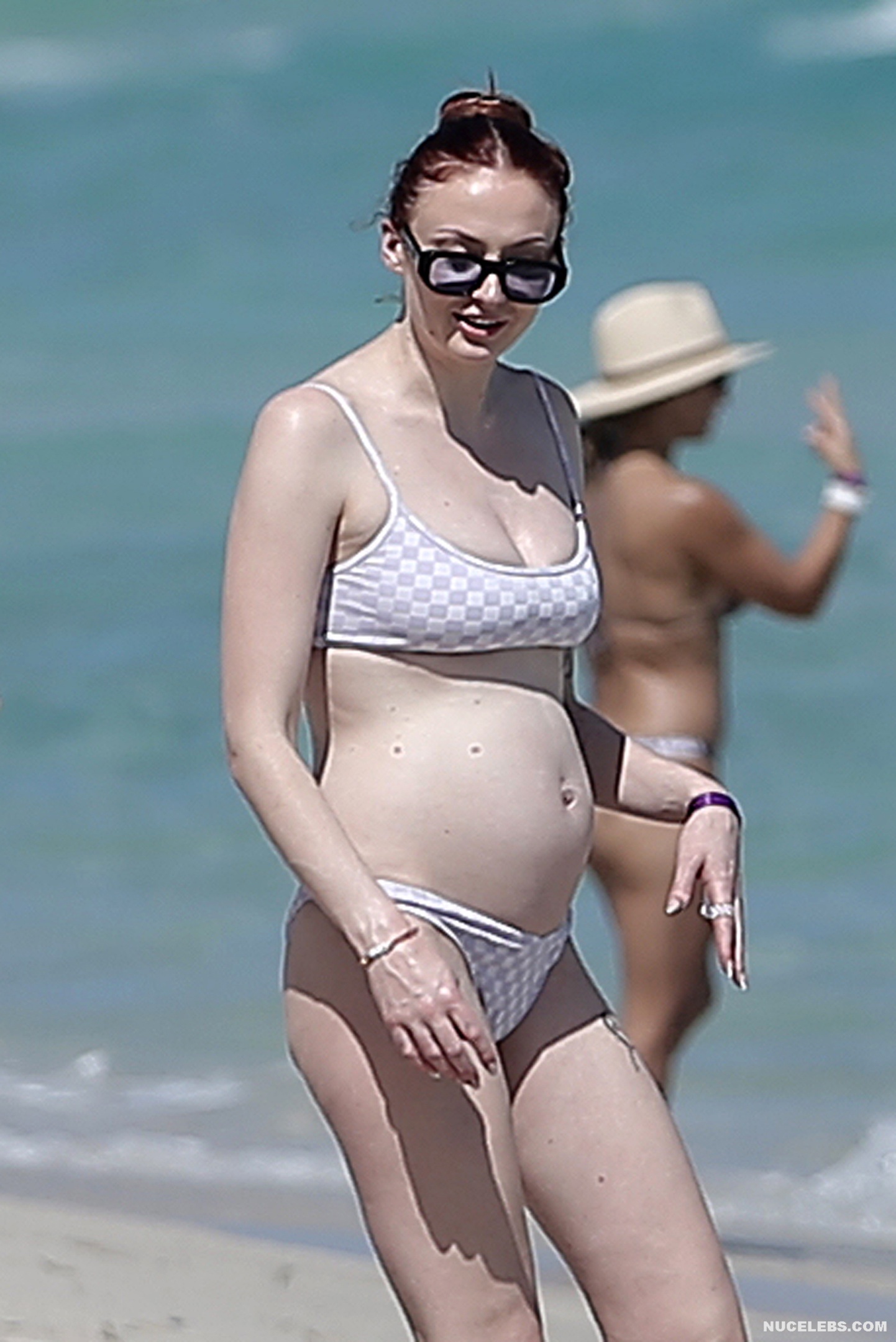Pregnant Sophie Turner appeared on the beach and the paparazzi could not ignore it. They immediately began taking pictures of the 26-year-old actress, hoping to get as many racy shots as possible. Well, Sophie Turner wasn’t completely nude this time around. Although you will be able to note that her boobs in a tight bra have increased significantly. However, her tummy was also rounded, and her booty in light-fitting wet panties was breathtaking!
