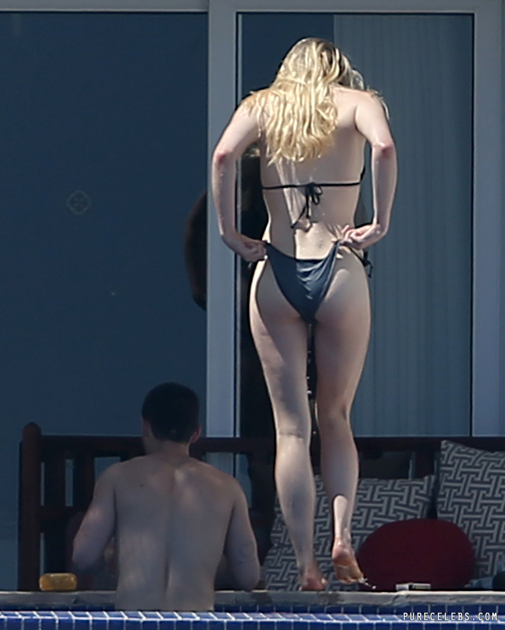 Sophie Turner Showing Her Nice Butt In The Wet Bikini