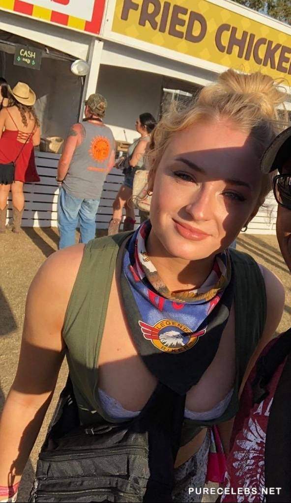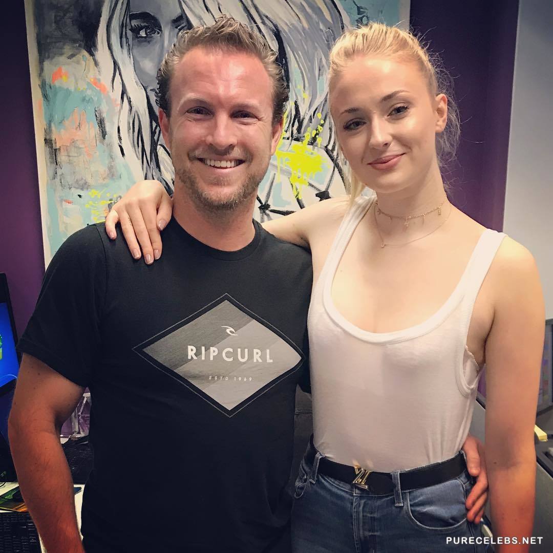 Game of Thrones star Sophie Turner is posing for the camera with her boyfriend and as she is doing that, we cannot help but notice her tank top that is barely containing her firm young tits. The blonde actress is in a good mood and she clearly loves all the attention that she is getting. We can only hope that she gives us a good show in GOT finale.