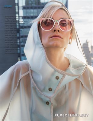 This blonde bombshell is an American actress and model. Spencer Grammer posed for Wingman magazine is some seriously sexy shots. The see-through overcoat is showing a nice glimpse of breasts and perky nipples that poking through the thin fabric. The stunning actress is also posing fully dressed in some quirky clothes but it does nothing to diminish the strong gaze she aims towards the camera. Hope to see more of her.