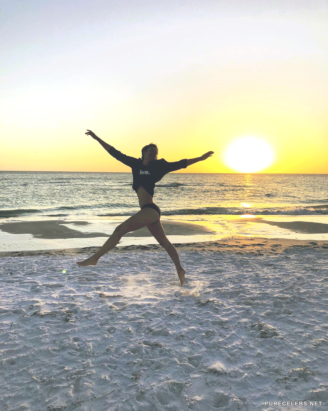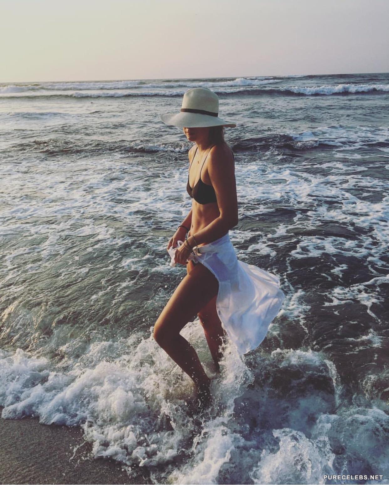 This blonde beauty is a professional tennis player hailing from Russia, but living in America for a long time. Maria Sharapova is gifted player, but she is also a babe, and thus she’s been featured on covers of Sports Illustrated Magazine, and on this pictures, we can see why is that. She is on the boat wearing white t-shirt with no bra, so her boobs are showing under the thin cloth, while her bottom is covered by thong bikini.