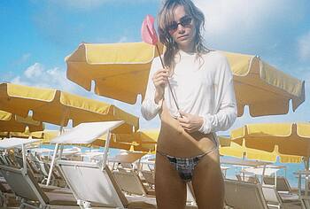 Suki Waterhouse is used to impressing everyone with her sexy photos. Check out how this actress poses in a white shirt, slightly opening her mouth and looking at the camera… She knows how to look damn hot not only during photo shoots, but also in real life. Have you already seen her photos in tiny bikinis or lingerie? These small pieces of fabric only manage to slightly cover Suki Waterhouse’s sweet booty and boobs, don’t they?