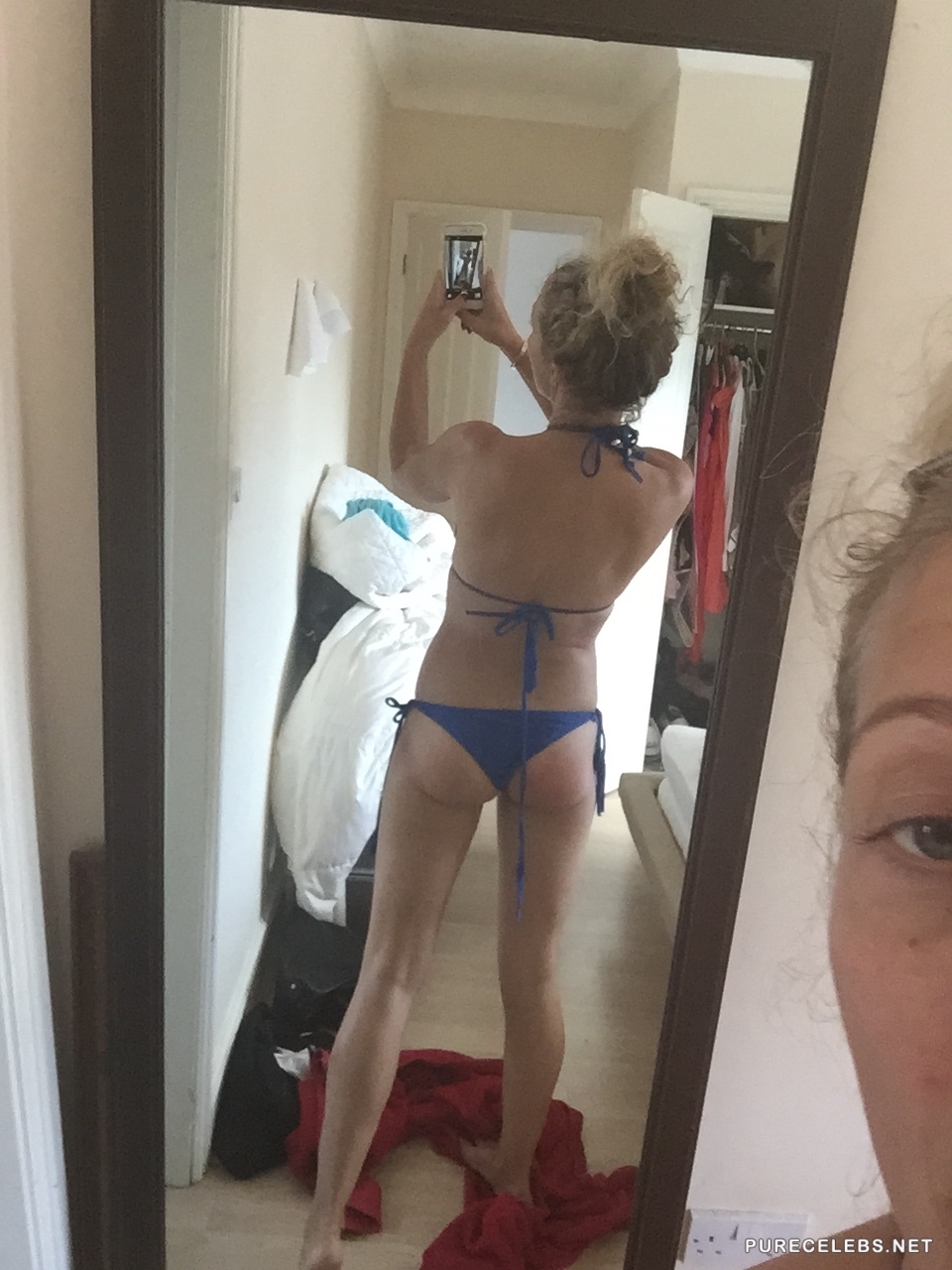 When you have a beautiful toned sexy body, it’s just a sin not to brag about it, Suzanne Collins thought. The celebrity made a series of stunning private selfies which were leaked. In one of the photos she is posing showing off her charming boobies with brown excited nipples, sweet booty and covering her little pussy with her hand. It will be impossible to resist such a charming blonde.