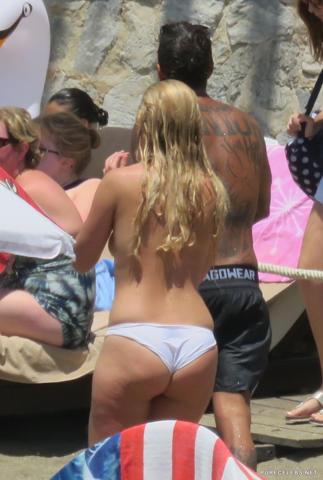 We are happy to report that some lucky paparazzi managed to snap candid photos of the Swedish singer Sigrid Bernson while she was on vacation recently. The athletic blonde was photographed on a nude beach with her boobs hanging out for all to see. Obviously she wasn’t shy about displaying her big breasts with the public while swimming and soaking up the sun. We hope that she will focus more on modeling in the future.