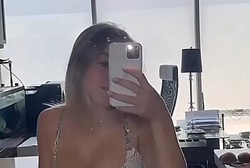 Call the firefighters! You will definitely have to put out a fire in your pants after watching Sydney Sweeney in her underwear video! This hot babe looked damn sexy in pink lace lingerie. And to be honest, Sydney Sweeney’s boobs looked incredibly huge in a tight bra. The actress couldn’t stop caressing her perfect body, looking defiantly into the camera and filming one of her most provocative selfie videos…