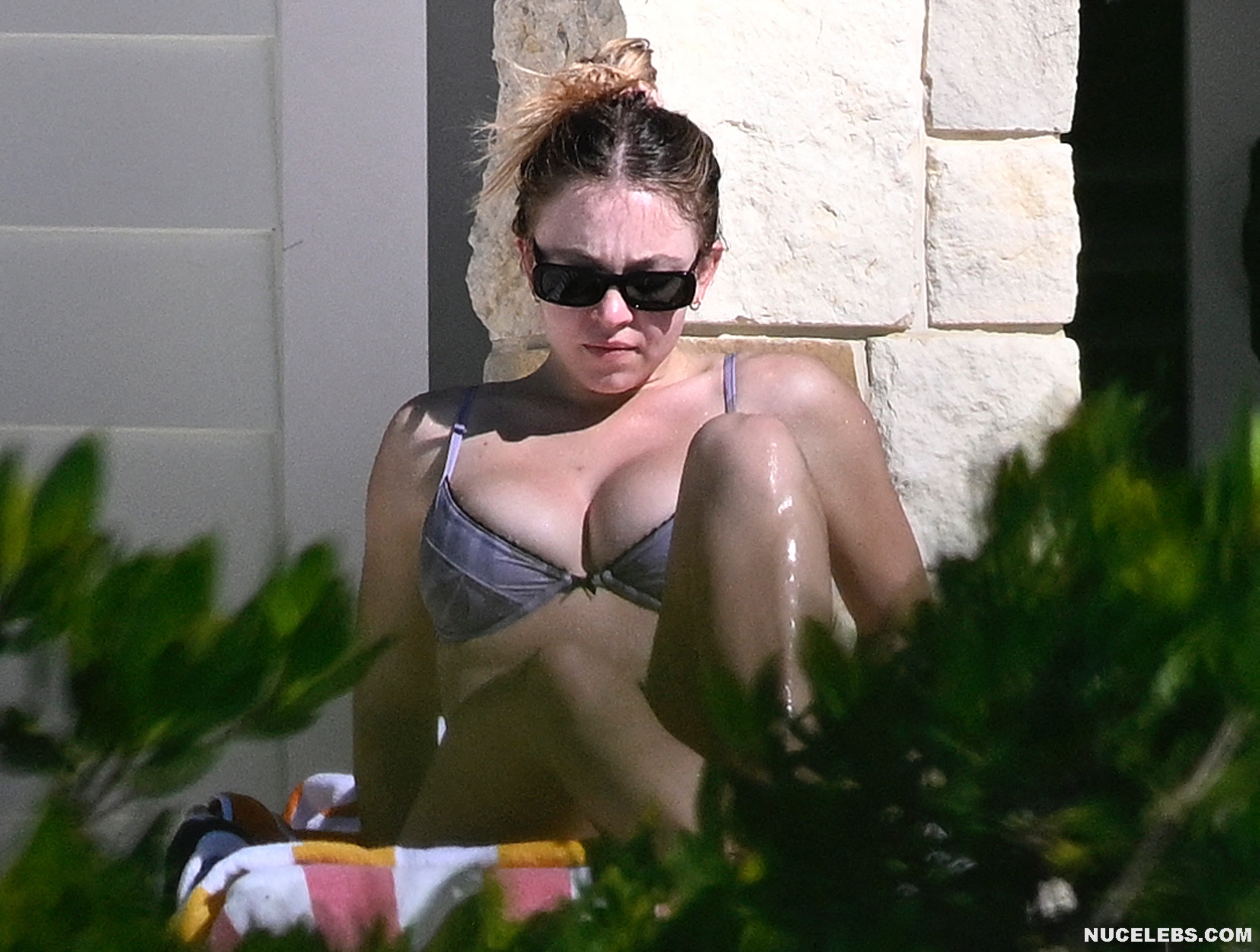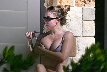 Discover the ultimate collection of Sydney Sweeney stunning nipslip photos! Paparazzi photographed this actress in a miniature bikini while she was relaxing near the pool. It seems this hot babe didn’t expect that her blue bra wouldn’t be able to hold her juicy boobs. After all, several times when she bent over to adjust her bra, her brown nipples slipped out! Sydney Sweeney quickly put her nude boobs back into her bra, but they tried to jump out again and again! By the way, did you notice her ass? Her peachy buttocks were separated only by a narrow strip of thong and you can appreciate their beauty!