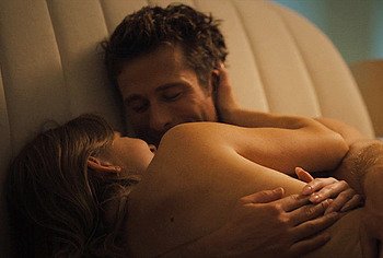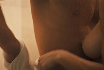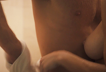 Sydney Sweeney rubs her nude tits on a man in Anyone But You (2023). When this American actress found herself in the shower with a man, he very quickly took off her clothes. And now Sydney Sweeney was already pressing her nude titties with hard nipples against his naked body.