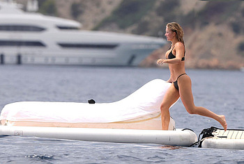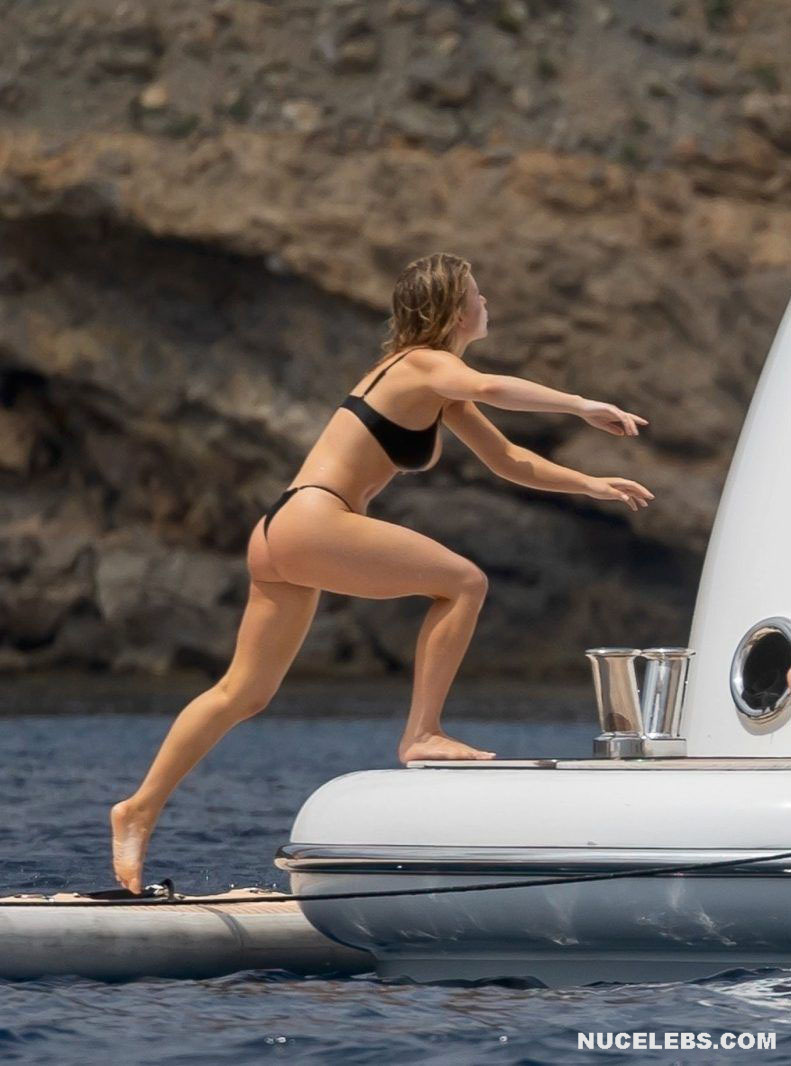 Peek into Sydney Sweeney’s beach diaries and uncover her sun-soaked adventures. This 25-year-old actress had a lot of fun on a yacht with her friends. It is worth noting that this nude celebrity is in excellent physical shape. Sydney Sweeney’s petite black bikini accentuated the beauty of her slender figure. The small bra perfectly supported Sydney Sweeney’s big juicy boobs, and the tight thong almost did not hide her gorgeous peach ass from our eyes.