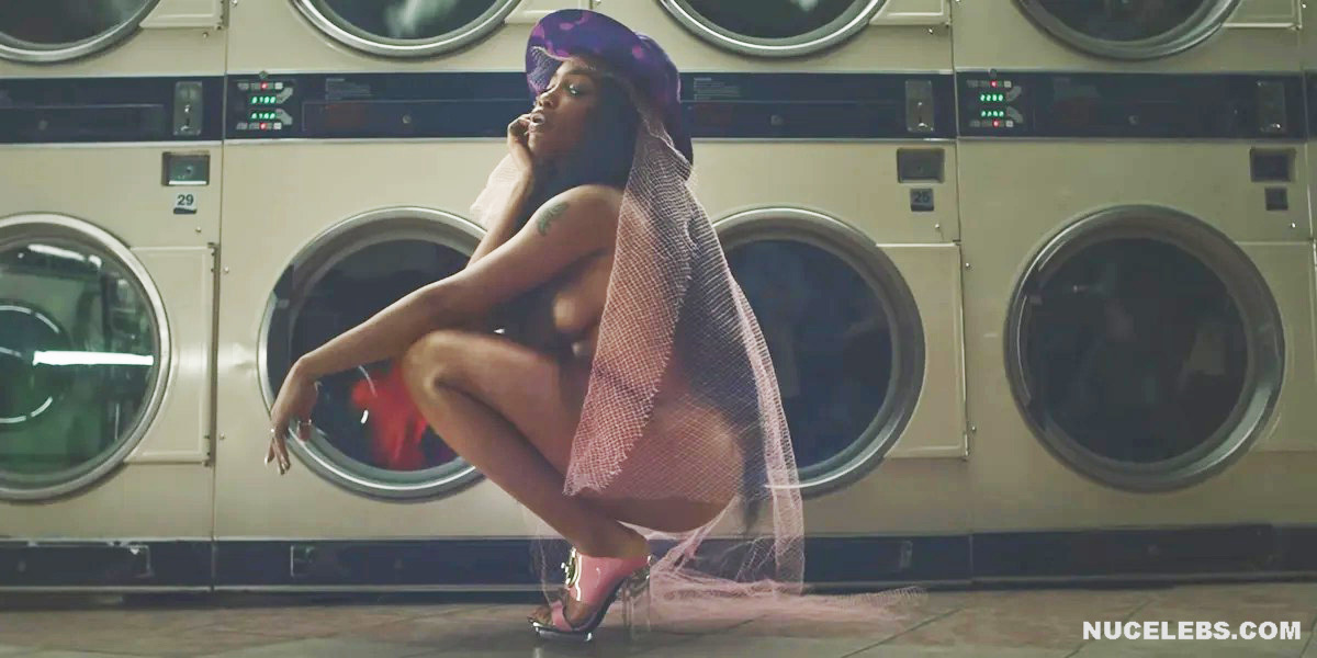 Get ready to howl with delight as you look at SZA’s nude photos in the laundry room. This American soul singer felt completely confident as she squatted next to the washing machines. Moreover, from the clothes she wore only a veil and pink shoes. Agree, it was impossible to look away from SZA nude boobs and peach buttocks! And the paparazzi photographed SZA nipslip moment. This 33-year-old star in a pink bikini was just talking to a man on the beach when her big boob with a brown nipple slipped out of her bra.