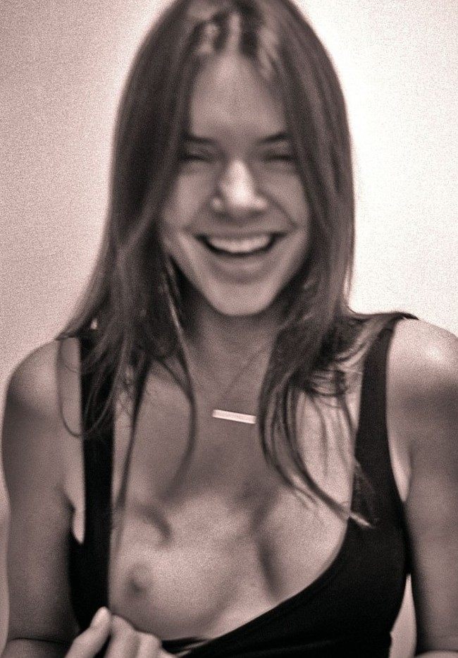 A world famous fashion model and celebrity, Kendall Jenner has a slim little body that’s been shown off in many a photo shoot for bikinis and skimpy outfits deemed fashionable. You can see her posing behind the scenes of shows here as well, but the best thing about this slender beauty is that she’s not afraid to show off her little tits, by pulling down her a-shirt for a quick photo.