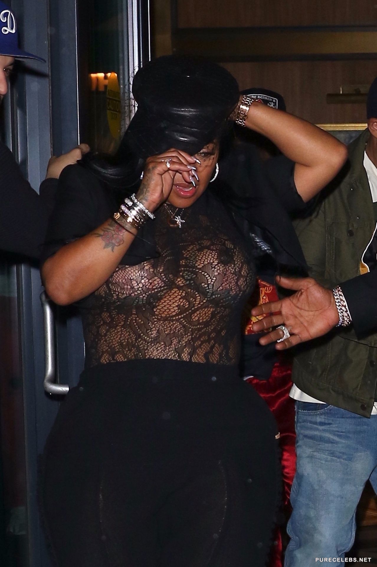 Not so long ago, Chrissy Lampkin attended an event where she spotted her huge melons. A celebrity chose a provocative black outfit that beautifully emphasized the curves of her amazing figure. Black tight pants show off her peachy posterior. Also, the star wore a translucent lace top through which you can clearly see her gorgeous boobs with big hard nipples. And the black cap she wore added more sexuality to her.