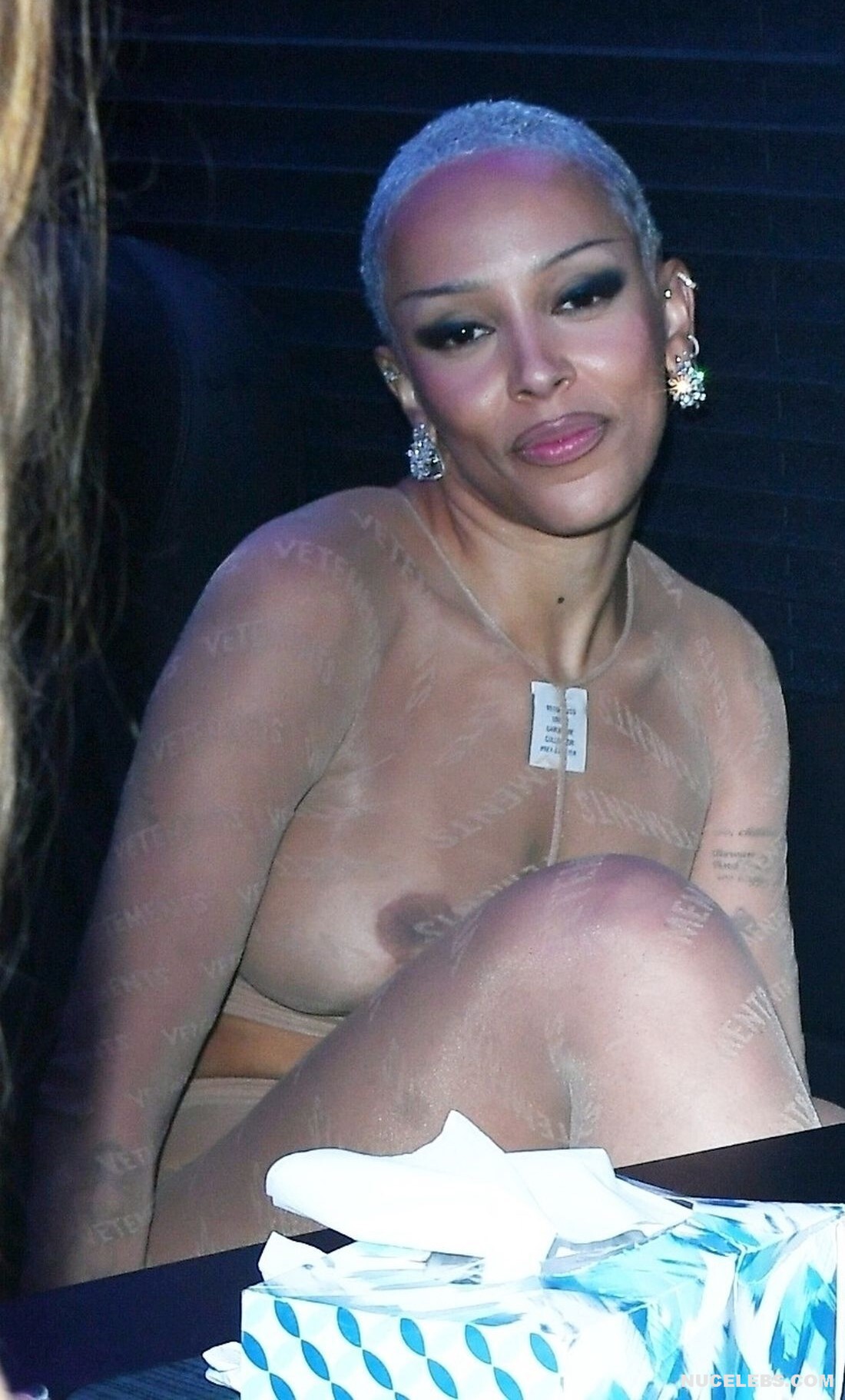 Wow! Looks like you’ll be jerking off all night looking at Doja Cat nude big tits! This 28-year-old singer happily posed in an outfit that looked more like beige nylon tights. And the top of her outfit was also made of beige transparent fabric! And since this star doesn’t like wearing a bra too much, she didn’t wear one this time either. So Doja Cat juicy melons were on display and you should definitely view these photos!