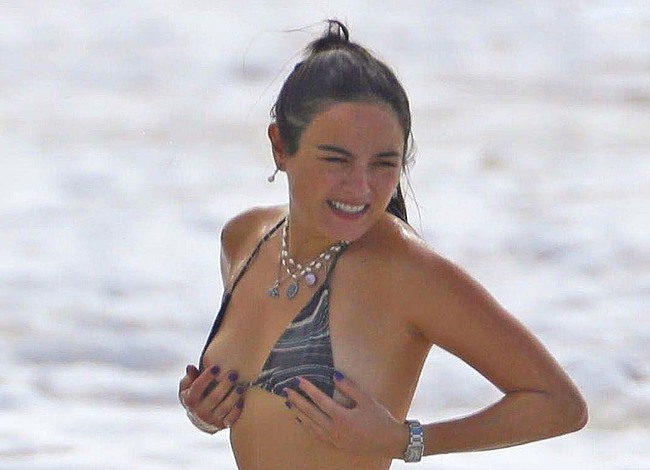Chase Sui Wonders sometimes shows off her nude boobs in public! So, the paparazzi photographed her at the moment when her hard nipple slipped out of her petite black and white bikini while she was swimming in the sea. The 26-year-old actress had to hold on to her bra with her hands to keep her bare breasts from being fully exposed! Photos of Chase Sui Wonders lesbian kisses will also turn you on!