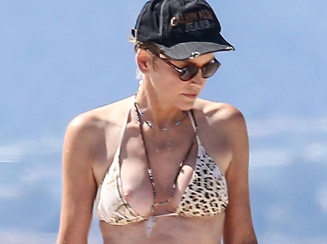 Young guys may not know blond actress Sharon Stone from her legendary role and crotch shot in Basic Instincts, but they can surely appreciate a busty MILF on the beach. Still going strong after all these years, and still in the lenses of paparazzi. Sharon let photographers get half a dozen pictures of her nip slip during her day at the beach. She may be mature, but those boobs are amazing.