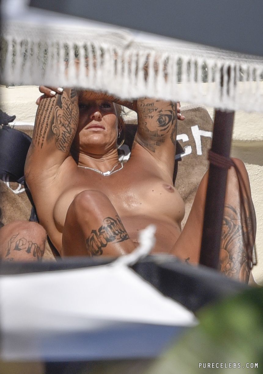 Paparazzi do not leave alone Madeleine Vall Beijner, one of the best Thaiboxer in the world. So they photographed this celebrity during her vacation. First, the girl bathed in the pool, dressed in a small black bikini. But after she emerged from the water, the star decided to take off her bra. So now we can admire Madeleine Vall Beijner’s nude boobs with brown nipples when she is sunbathing.