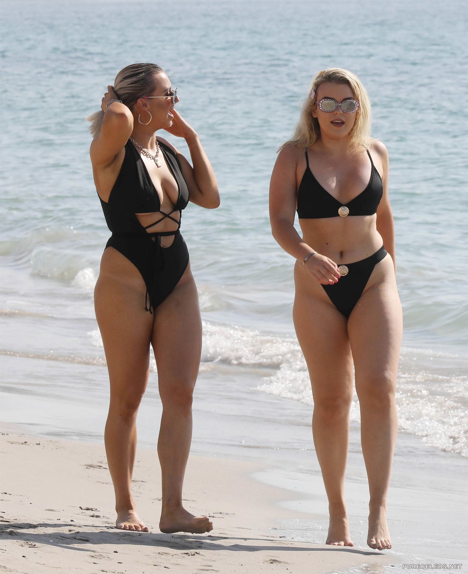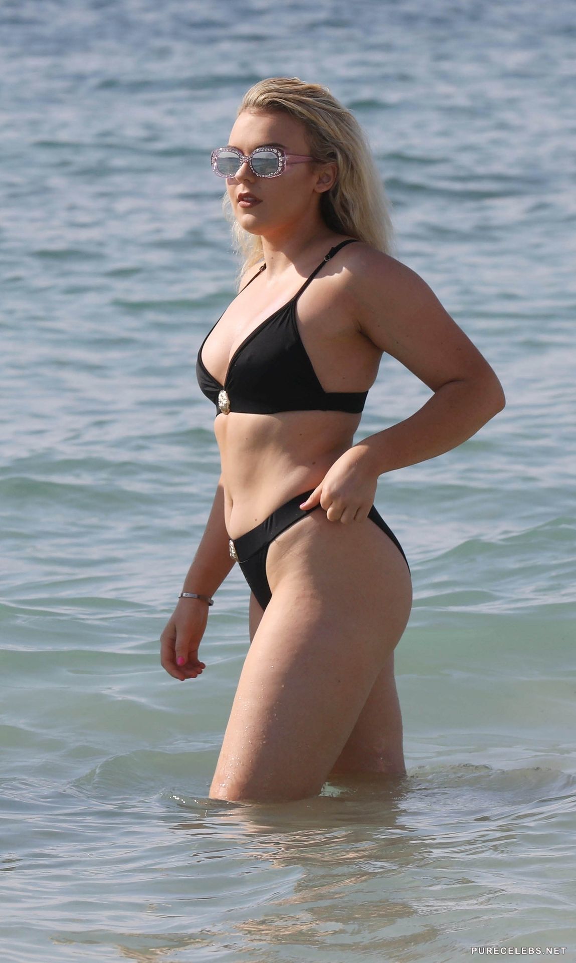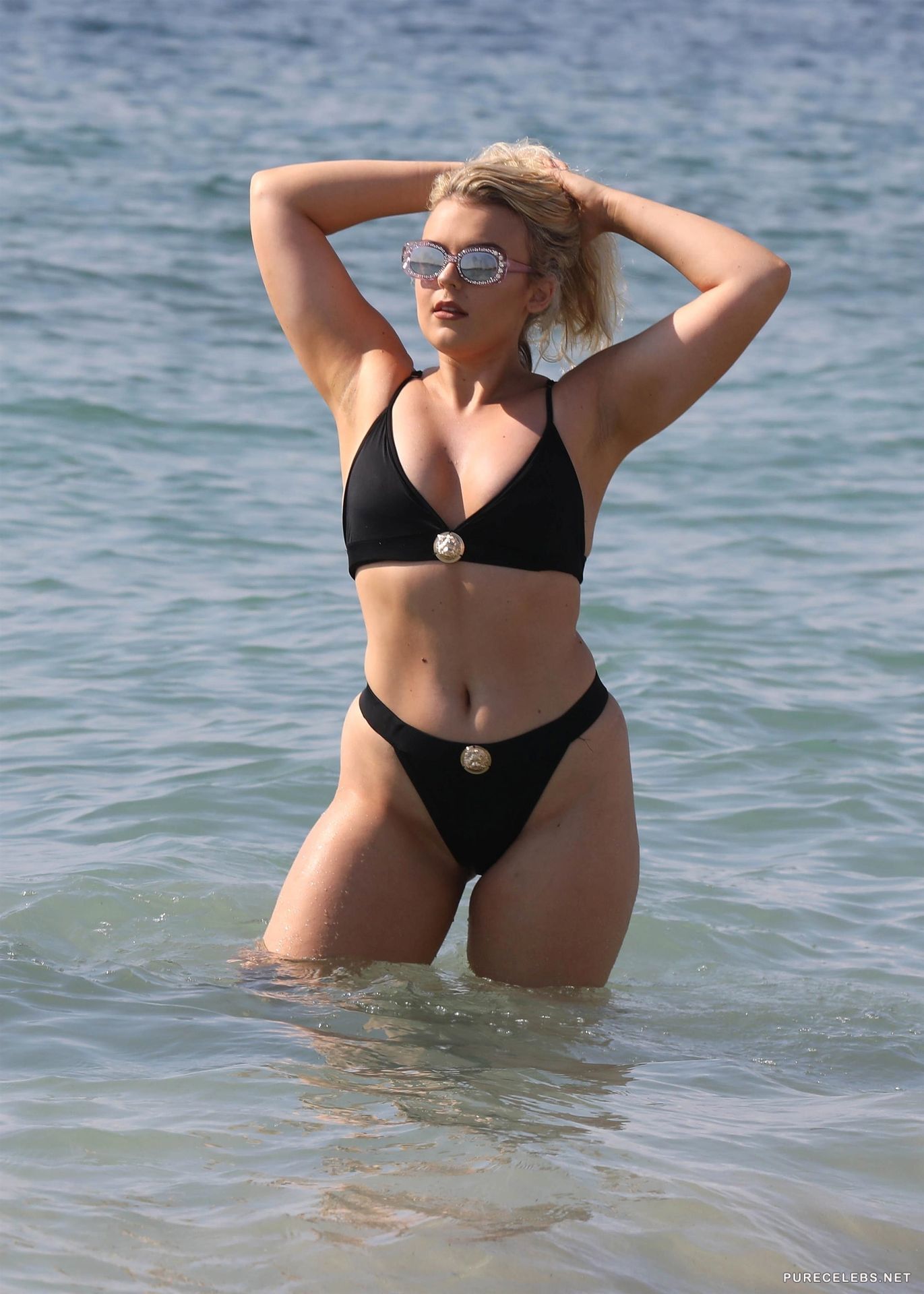 Tallia Storm was caught by paparazzi during her vacation on the beach. It is simply impossible to resist the curves of her gorgeous body when she takes off her clothes and stays in one bikini. This time, the star wore a small sexy black bikini, which suited her very well. Black panties perfectly emphasized her cool buttocks, and her big wonderful boobs looked just incredibly seductive in a tight black bra.