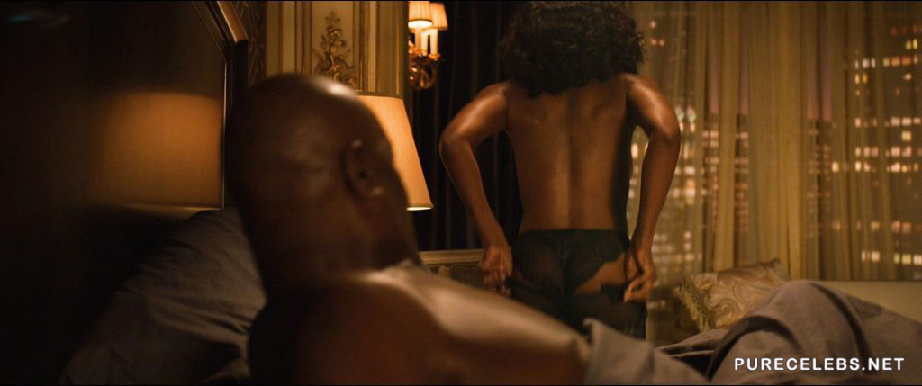 Famous actress Tamberla Perry starred in some topless scenes in The Good Fight. We can see her wonderful naked body when she gets out of bed, dressed only in panties. Her naked juicy tits with hard brown nipples looked just overwhelming, and we can admire them before she puts on her beautiful bodysuit. She also showed off her lovely ass in a thong when dressed.
