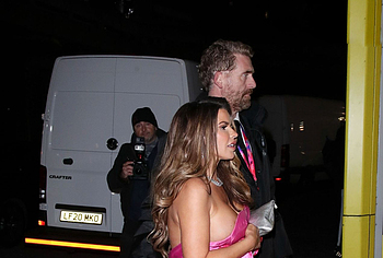 Sweet beauty Tanya Bardsley almost showed her nude boobies in public! And the paparazzi immediately filmed this moment. So this English model got out of the car in a long pink dress. At the same time, Tanya Bardsley had to hold the top of her dress to prevent her nude tits from slipping out of it! By the way, if you look closely, you will see that even the areolas of her nipples peep out of the dress.