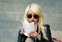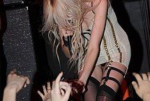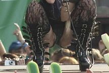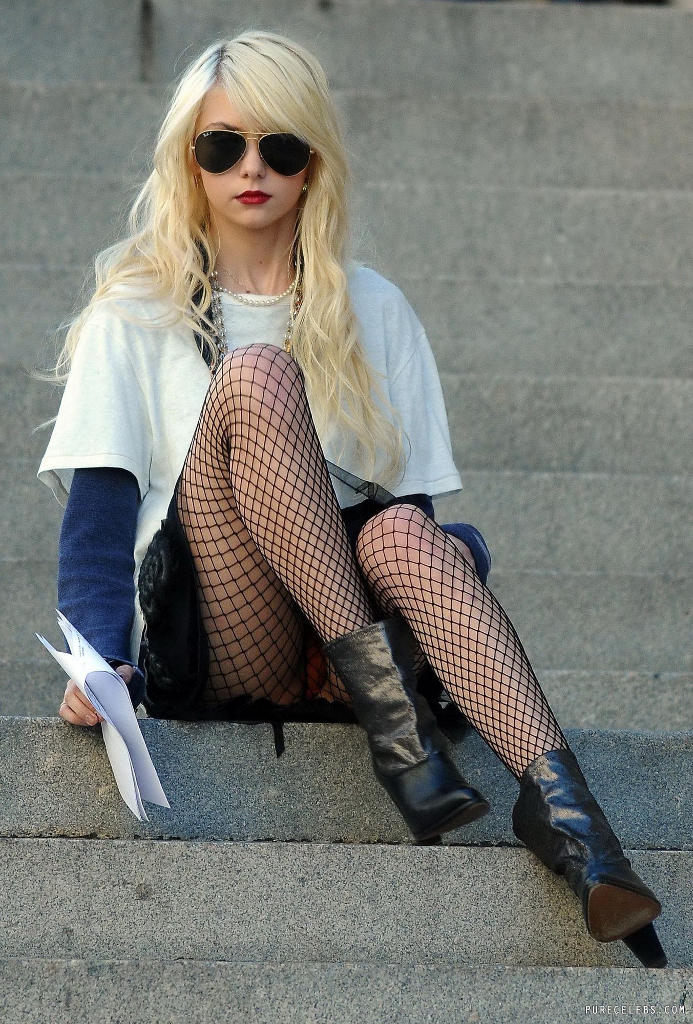 Blonde bad girl and famous singer Taylor Momsen has always worn outfits that would make even a porn star blush, but until now nobody put together a gallery of candid photos like this. This Hollywood babe likes to wear fishnet stockings and leather boots, judging by these photos, but not nearly as much as she likes to flash her upskirt and show off her ass while dancing on stage
