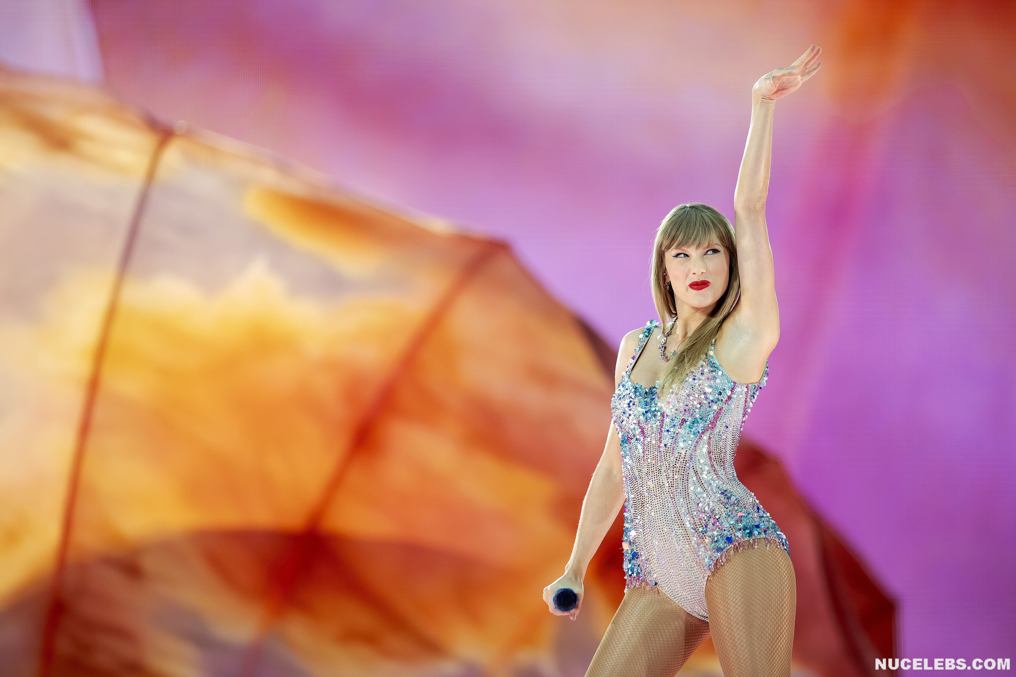 Taylor Swift once again impressed the audience. So, she showed off her awesome cameltoe in white panties right on stage! During the performance of the song, she held onto the microphone stand with one hand and leaned down strongly back. It was at this moment that the bottom of her white dress was lifted up so much that her panties became visible. And since her legs were spread apart, you could take a good look at Taylor Swift cameltoe!