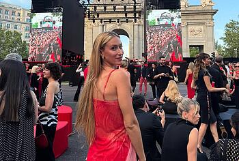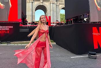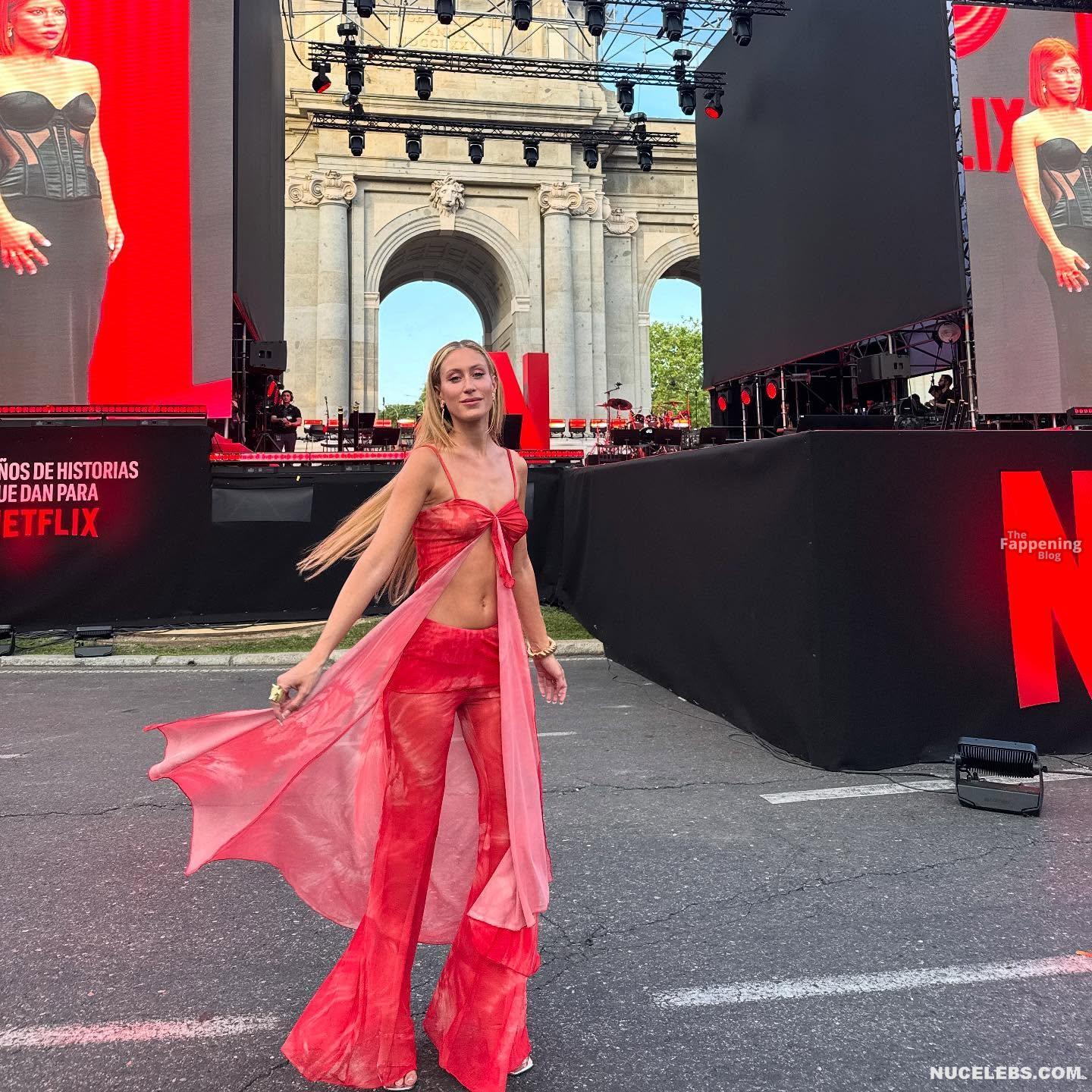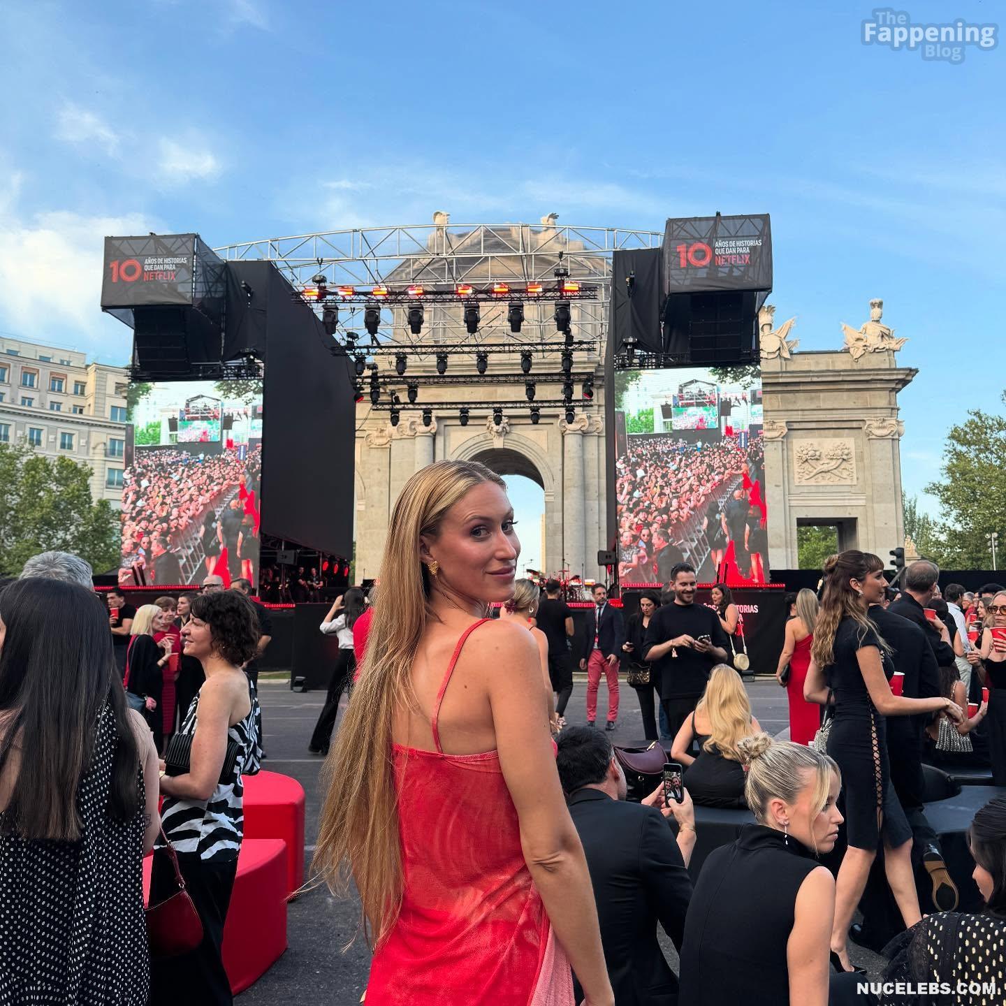 Teresa Riott usually prefers modest outfits, but not this time. At a recent event, this beauty appeared in a bright red suit that impressed many. The most interesting thing is that she did not wear a bra under her top. Teresa Riott nude boobs were visible through the thin fabric, making this look incredibly hot.