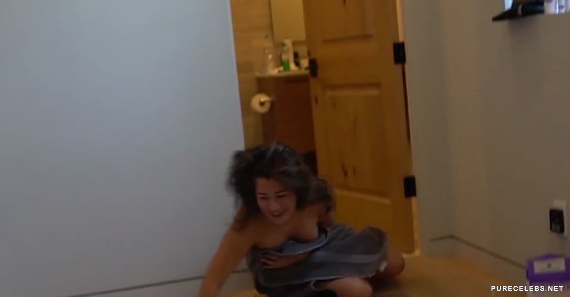 This famous YouTube star with millions of subscribers and many more on Instagram, just got even more popular. Young Tessa Brooks was caught on camera by her boyfriend. As she was walking out the shower after they had sex, she is covered just in the towel and then she trips and falls down to the ground, as the towel unwraps and reveals her perky sexy tits for our viewing pleasure.