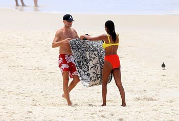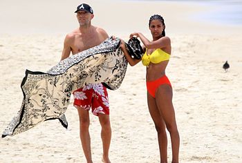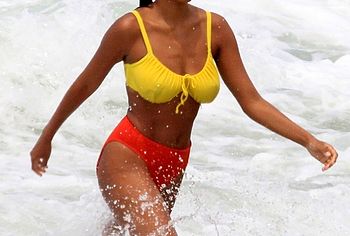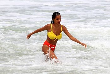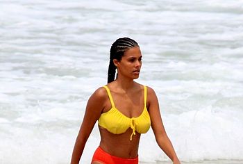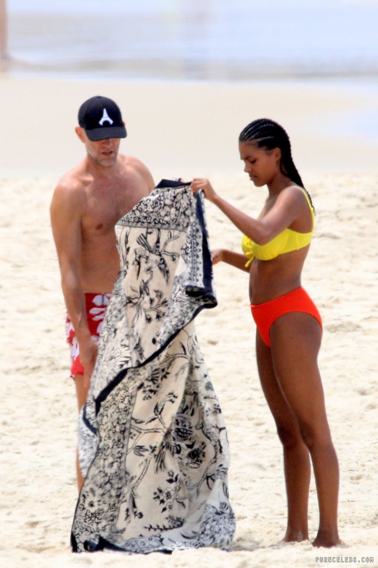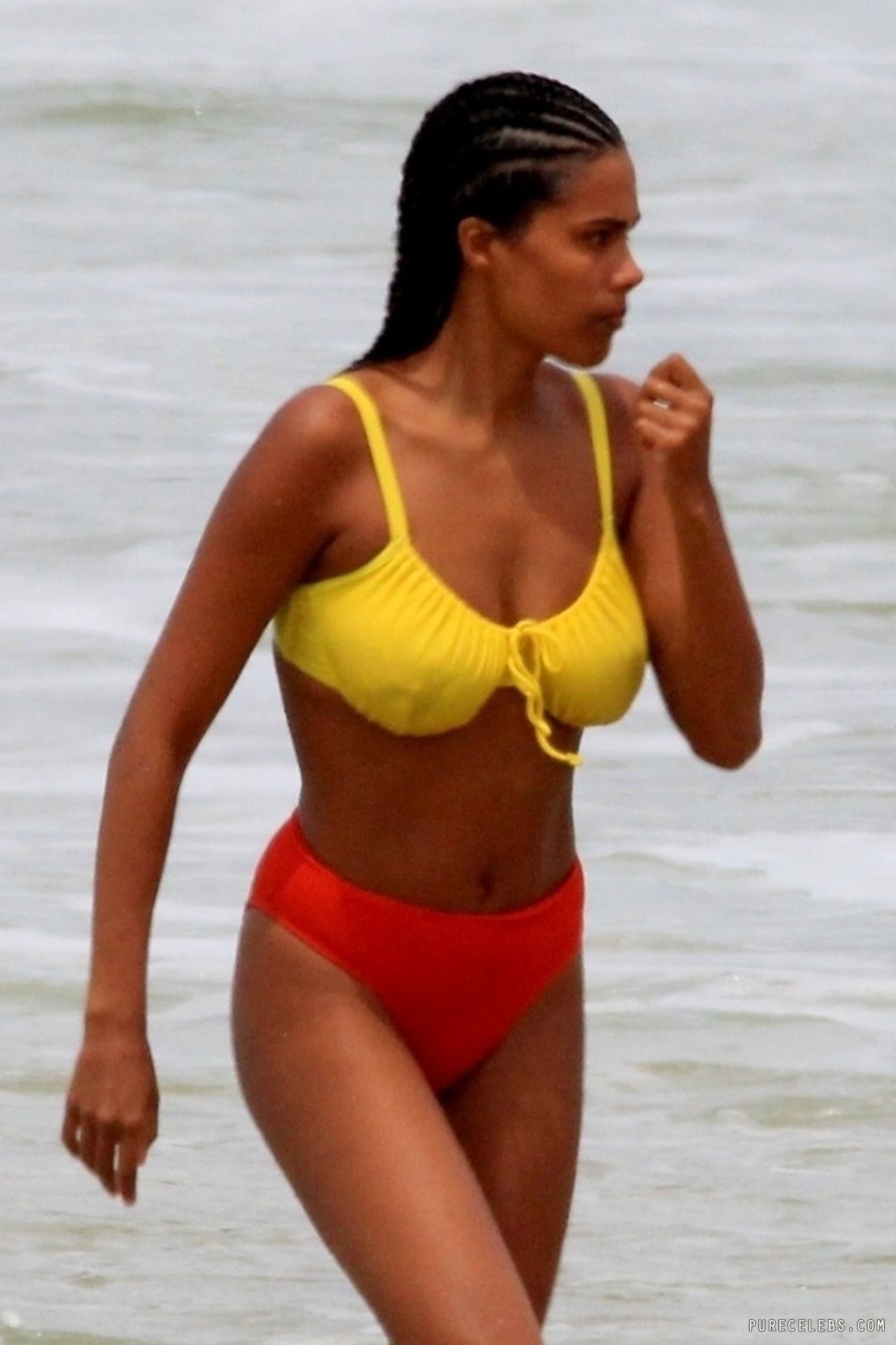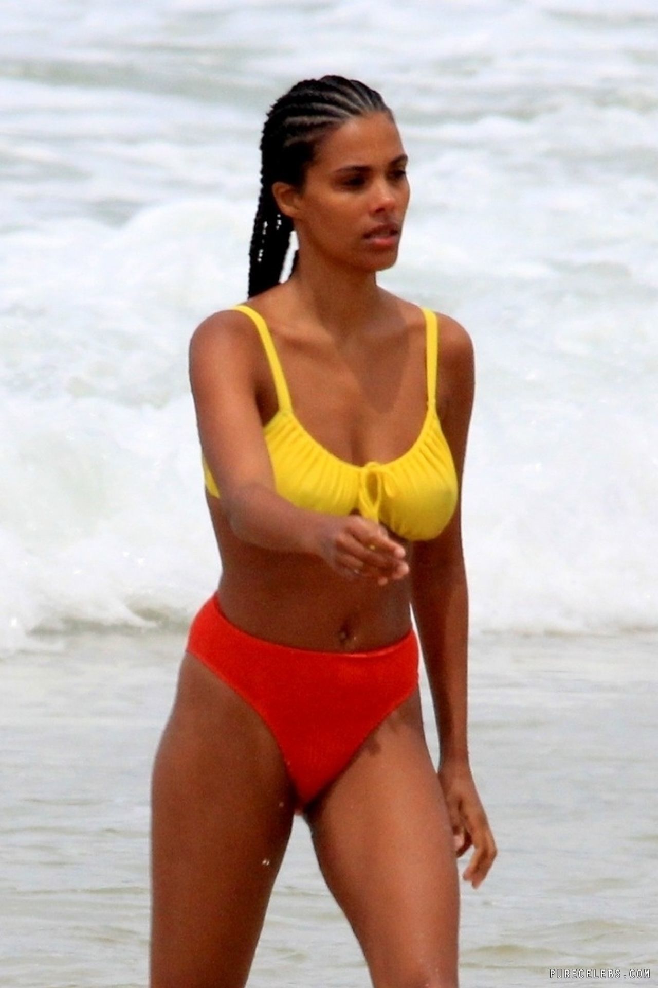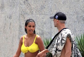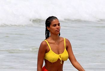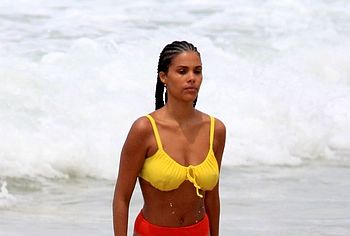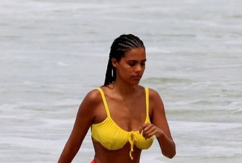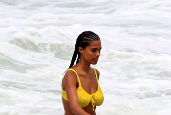 French model Tina Kunakey once again pleased her fans by showing off her non nude body in a bikini. This beauty looked very sexy, relaxing on the beach with her boyfriend. The girl was wearing a very cute bikini that emphasized her beautiful figure. She looked especially hot when she stepped out of the water. Her ass in wet panties was breathtaking. And take a look at her huge boobs! Tina Kunakey’s breasts with poking nipples seemed almost naked in a wet yellow bra.