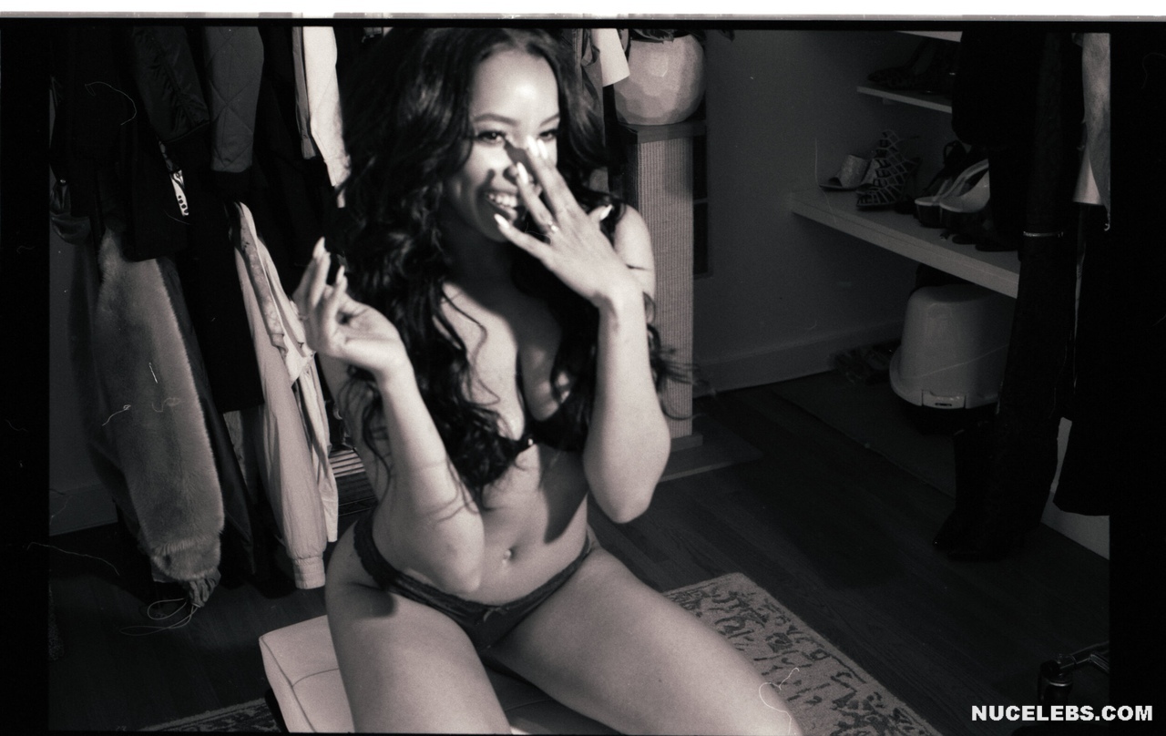 Have you already seen Tinashe’s black and white nude photoshoot? This American singer can surely spark everyone’s fantasy! Tinashe not only showed off her nude booty, adorned with a narrow strip of thong. This celebrity also showed off her awesome naked boobs while bathing in the shower and sitting on the couch. By the way, this girl was very close to showing off her nude pussy too, but she didn’t. Well, maybe next time?