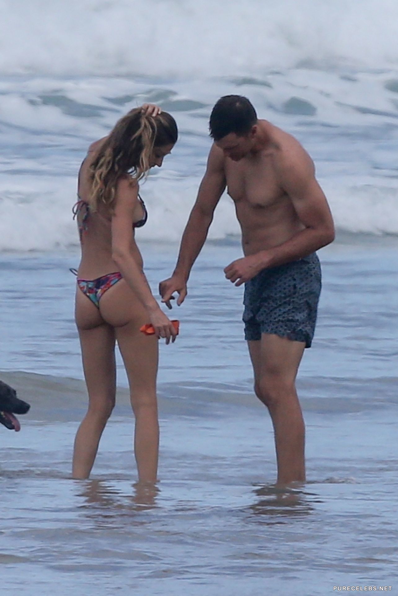 Recently, the Brazilian model Gisele Bundchen had a great time on the beach, and it was there that she was caught by nimble paparazzi. Hot blonde was wearing a little colorful bikini and looked perfectly in it. This celebrity looked incredibly seductive when she came out of the water in a wet bikini that perfectly fitted her gorgeous booty and amazing boobies. This girl will surely make you think about her all night!