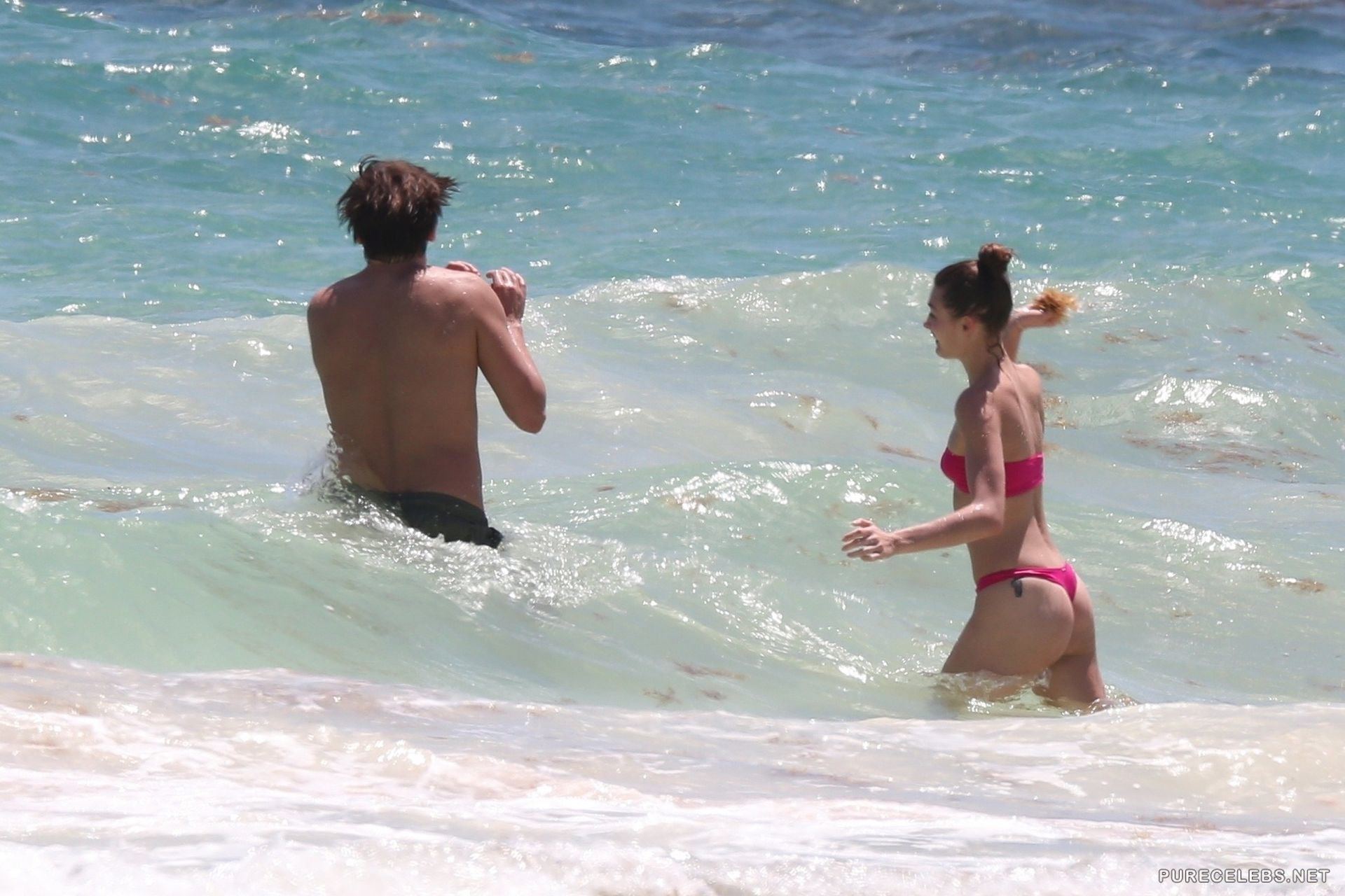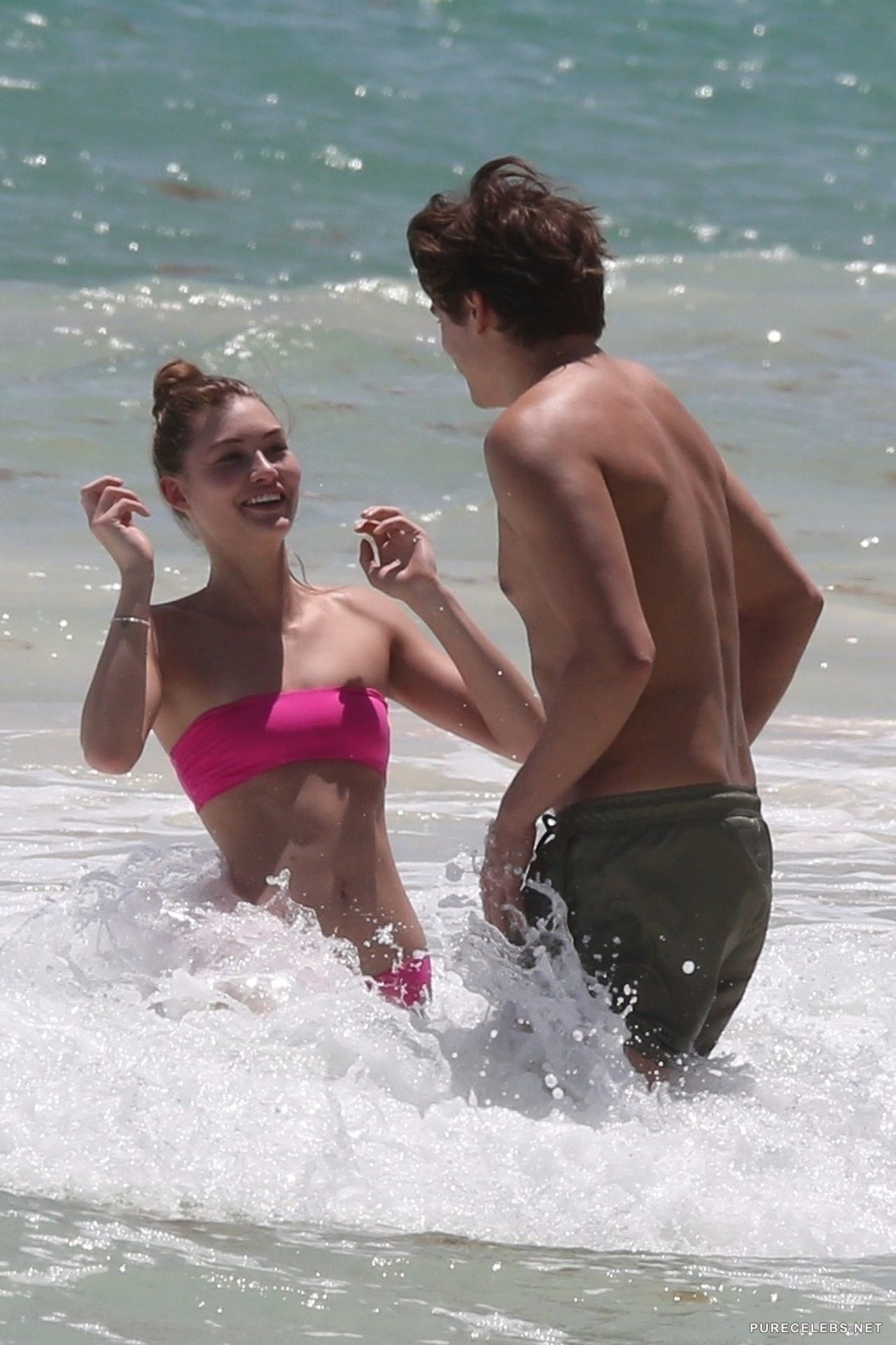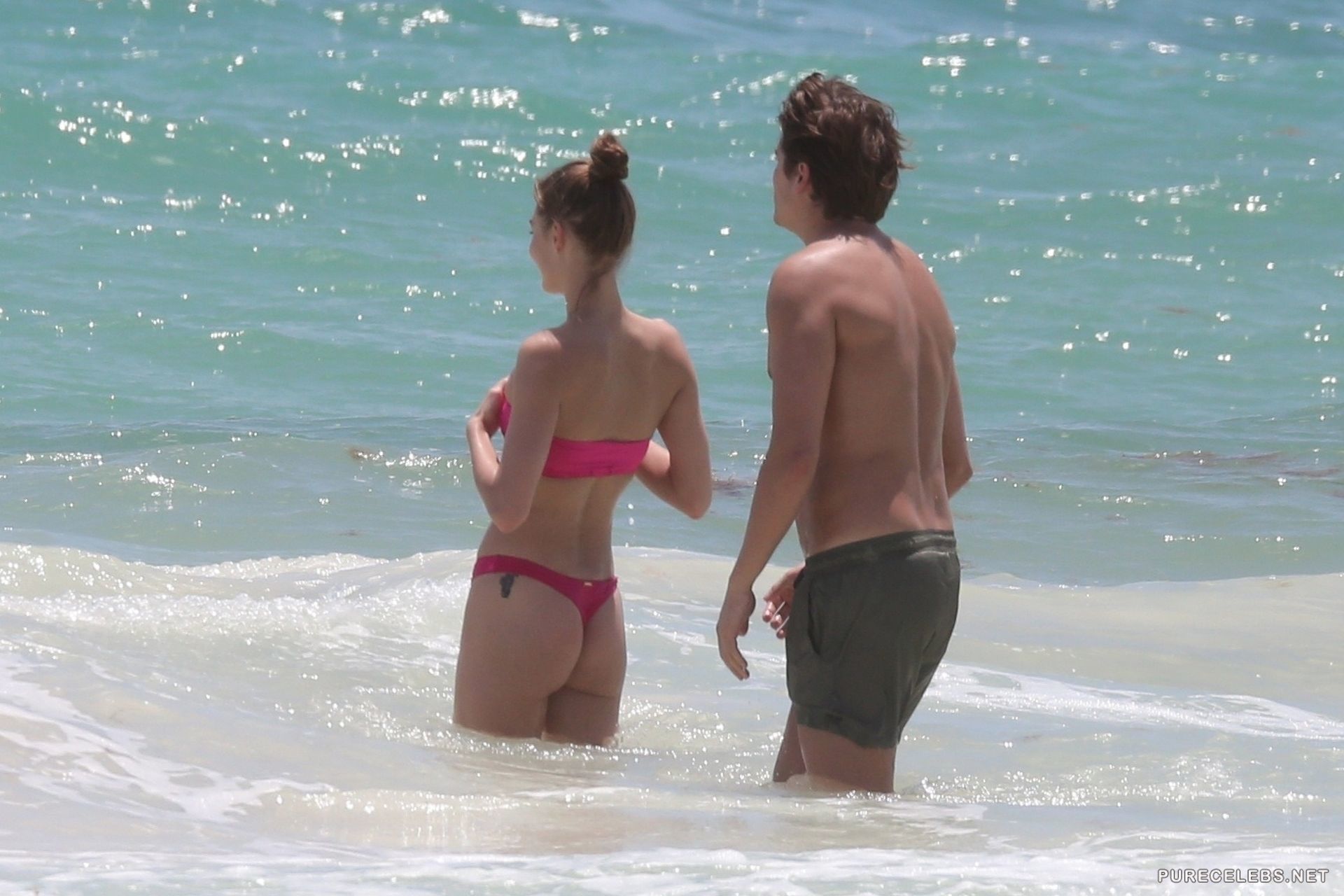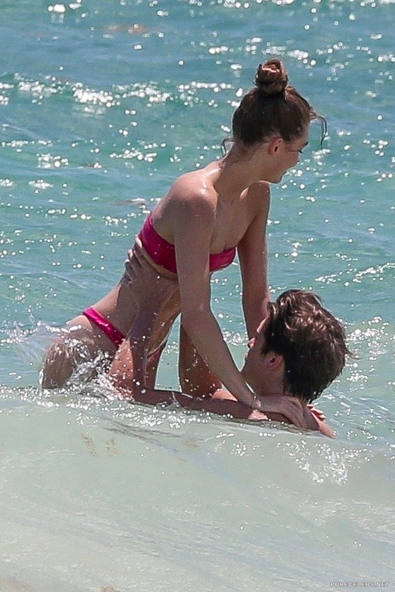 Model Grace Elizabeth had a lot of fun with her boyfriend while their rest on the beach. Stunning celebrity was wearing a small pink bikini that perfectly emphasized her gorgeous and wonderful ass and showed her toned body. First, a couple was playing in the water and then they started to hug and Grace knocked her boyfriend right into the sea. Really, it’s impossible to resist such a hot sexy babe!