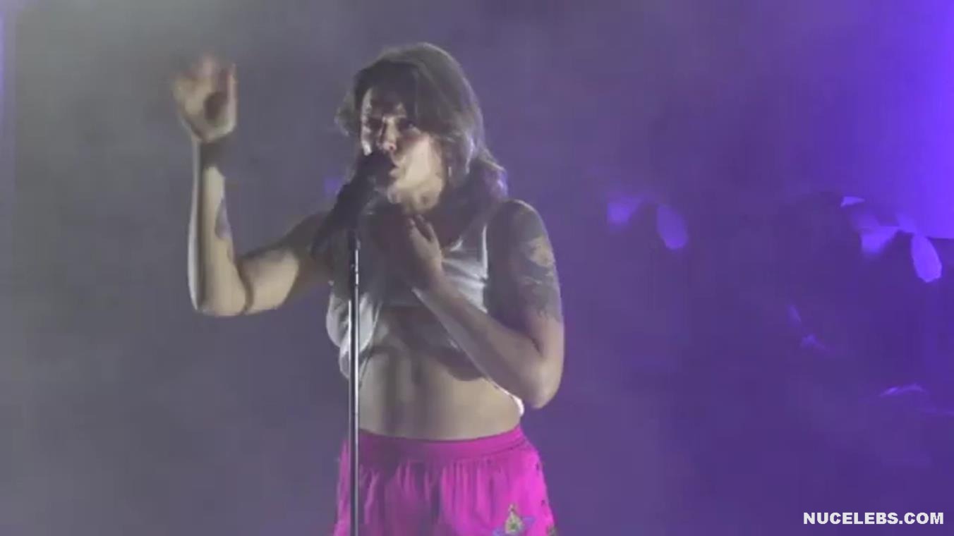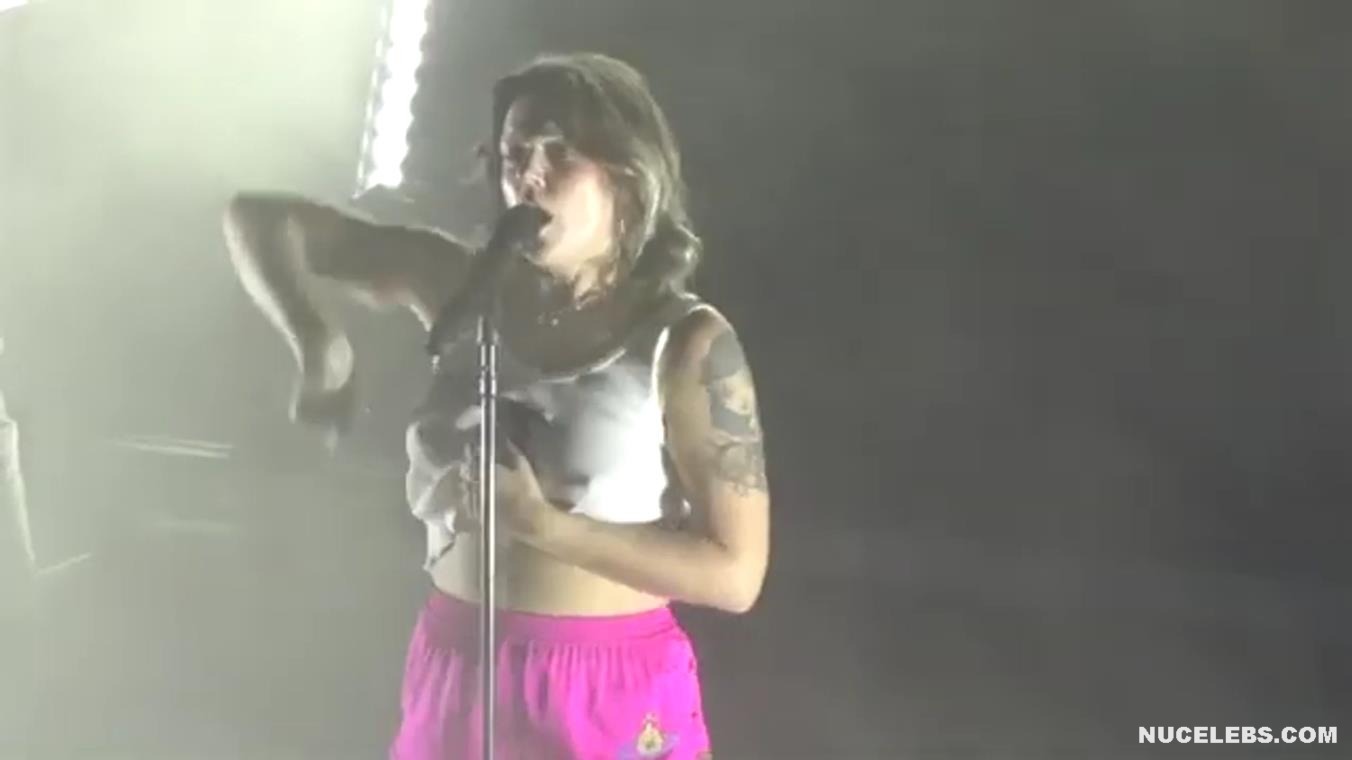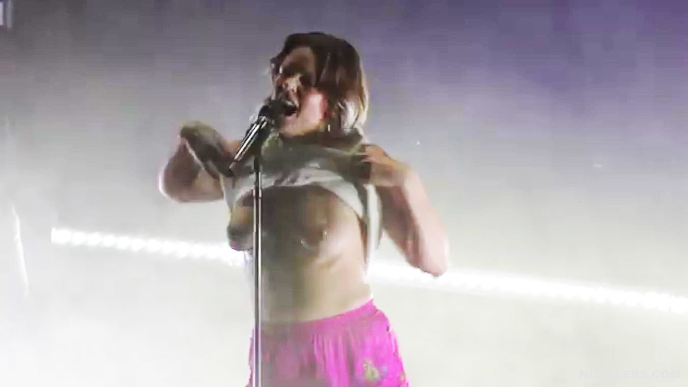 Everyone who attended the concert of Swedish singer-songwriter Tove Lo will definitely not forget it. After all, Tove Lo showed her nude breasts while performing on stage! It is worth noting that from the very beginning, the celebrity looked very seductive. Her booty almost jumped out of her little pink shorts. And her poking nipples were clearly visible through the white tight top. During the performance, the singer began to gradually raise her top up. And at one point, viewers could see Tove Lo nude titties!